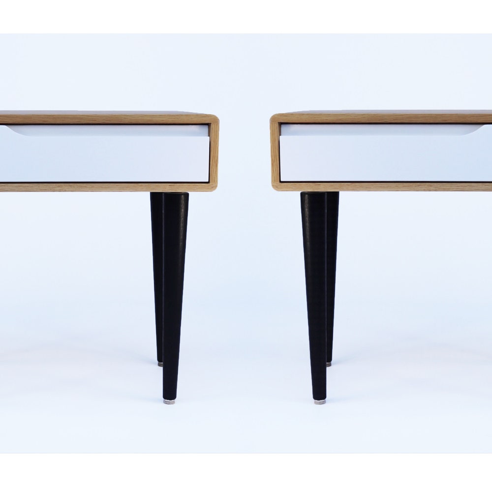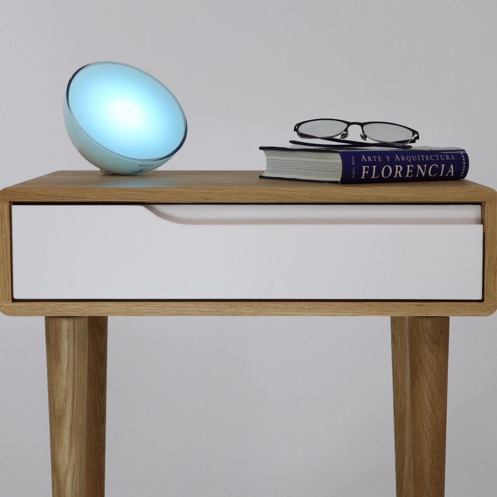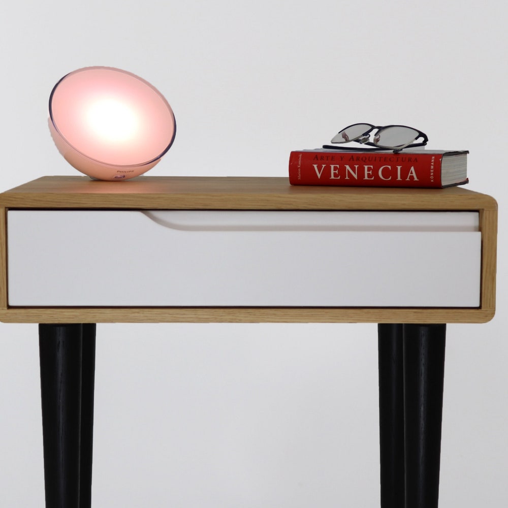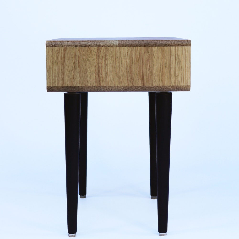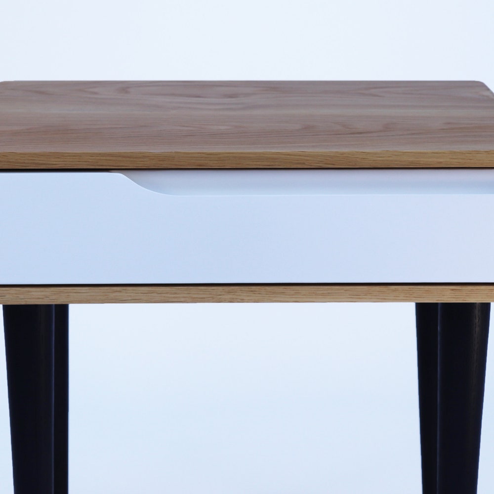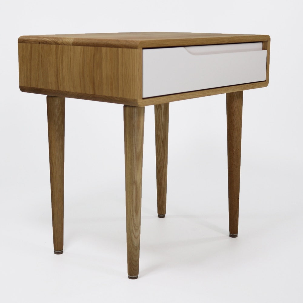 Bedside table, Nightstand, Side table with white drawer in solid Walnut or Oak wood