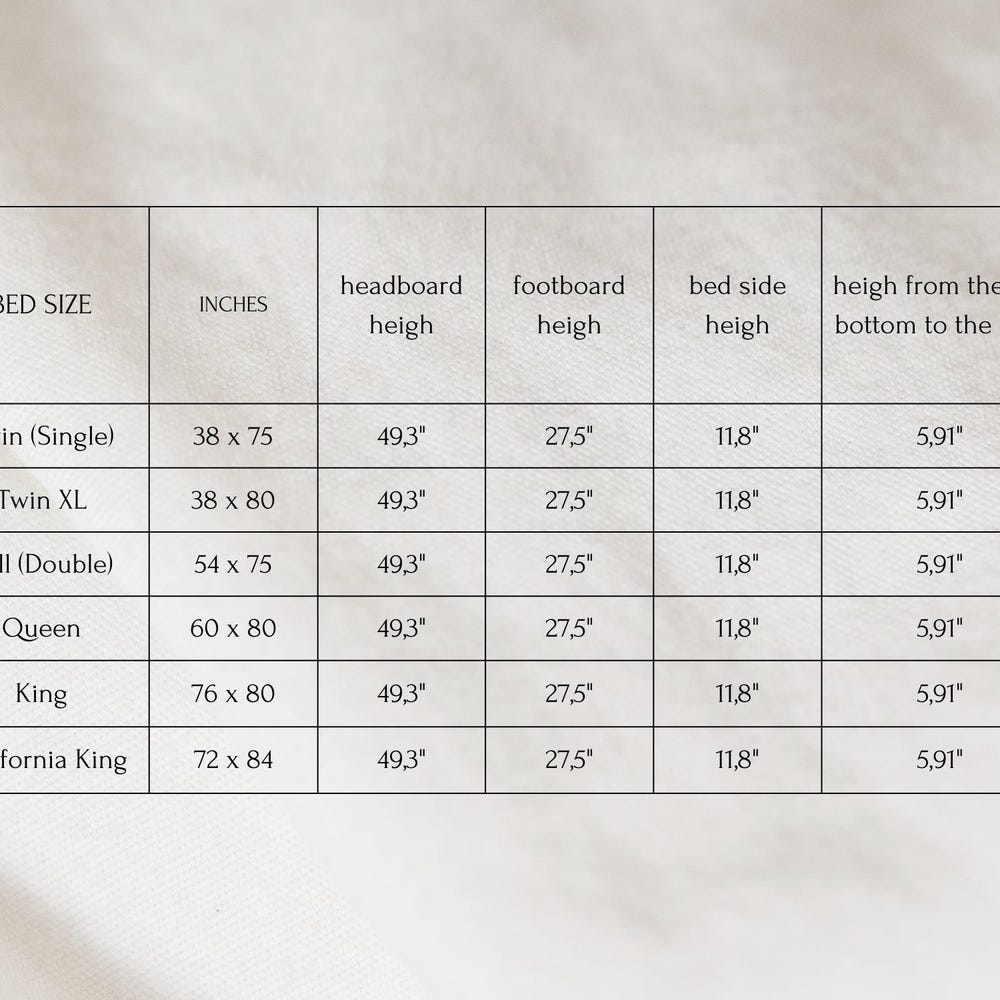 | Size | Twin, Twin XL, Full, Queen, King, California King |