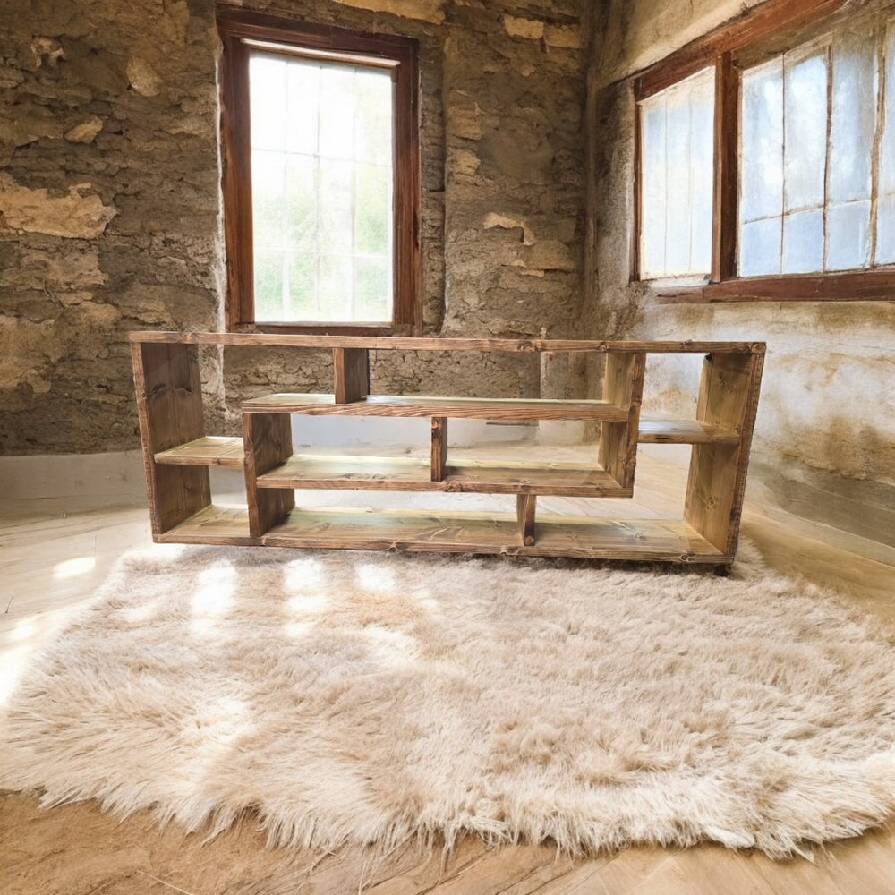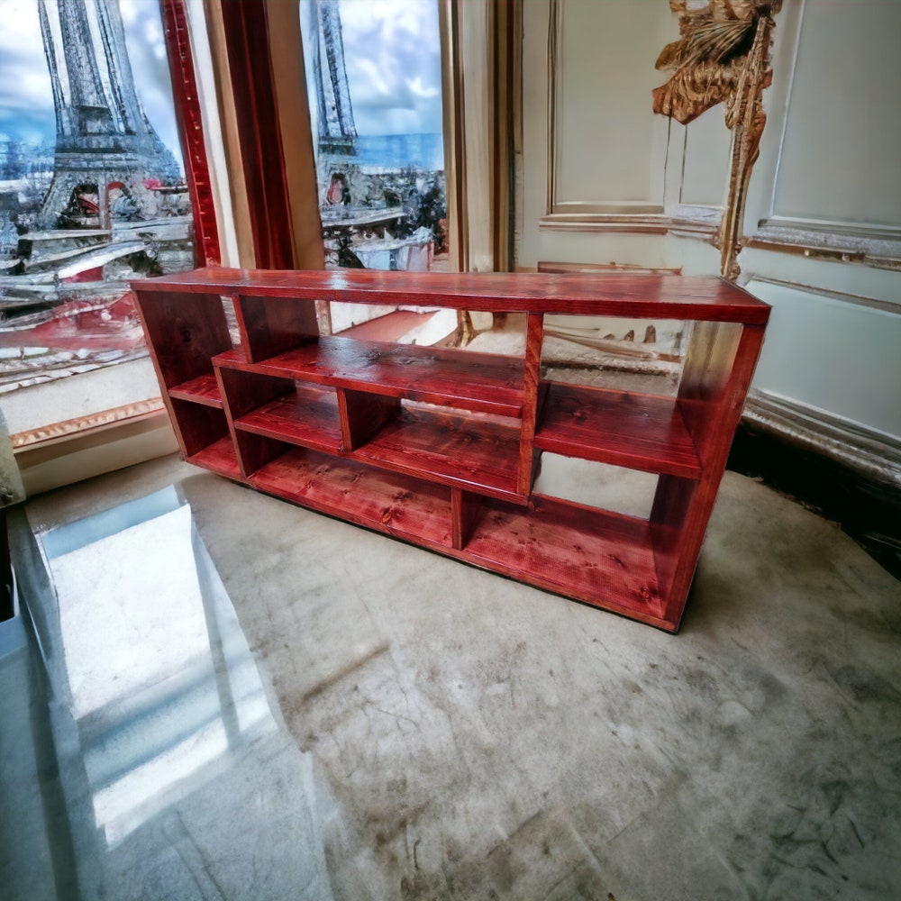 Each bookshelf is uniquely made from reclaimed wood, giving it a distinct character and ensuring that no two pieces are exactly the same. The natural wood grain adds warmth and sophistication, making it a standout addition to any room.