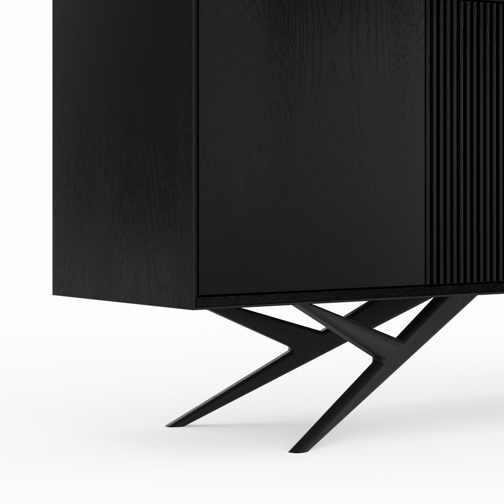 Black oak long sideboard with four slatted doors and organic shape base in mid century modern style, highboard, commode, TV stand, dresser