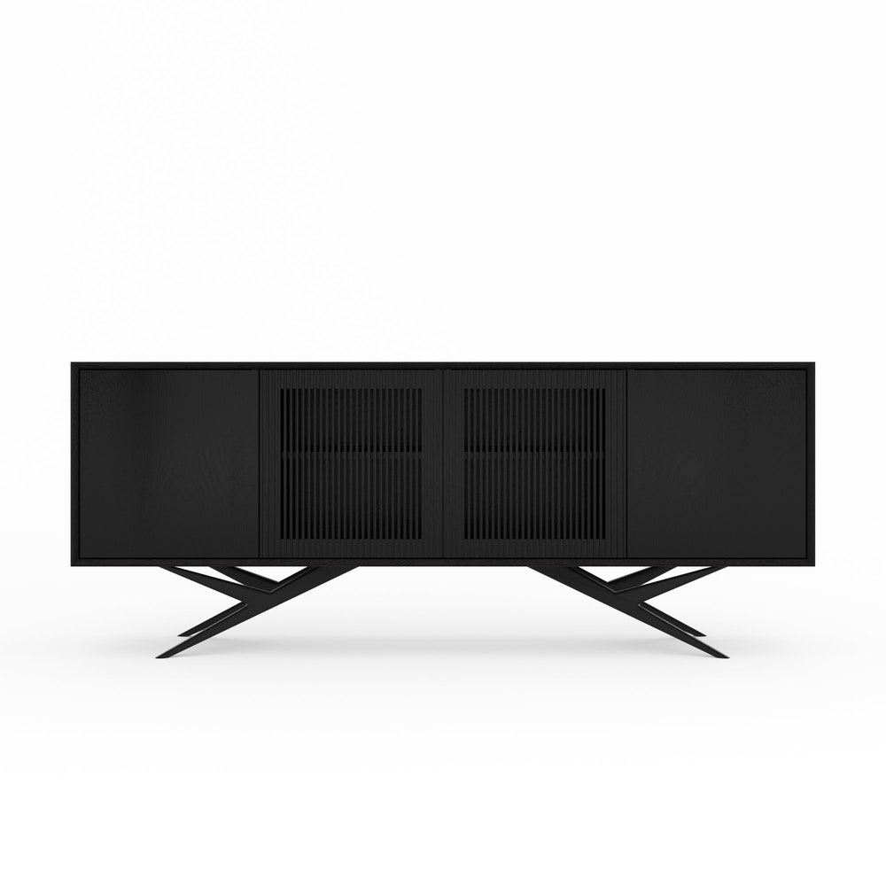 Be the first to review “Black oak long sideboard with four slatted doors and organic shape base in mid century modern style, highboard, commode, TV stand, dresser”