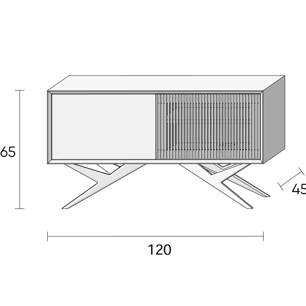 Beautiful black small cabinet with two doors and black, organic shape base in mid century modern style.The right door is slatted – perfect as TV stand.Cabinet made of solid oak wood and wood covered with natural oak veneer. One adjustable shelf behind each door. Cable hole behind slatted door.Handmade in Poland. Dimensions:width: 120 cmdepth: 45 […]