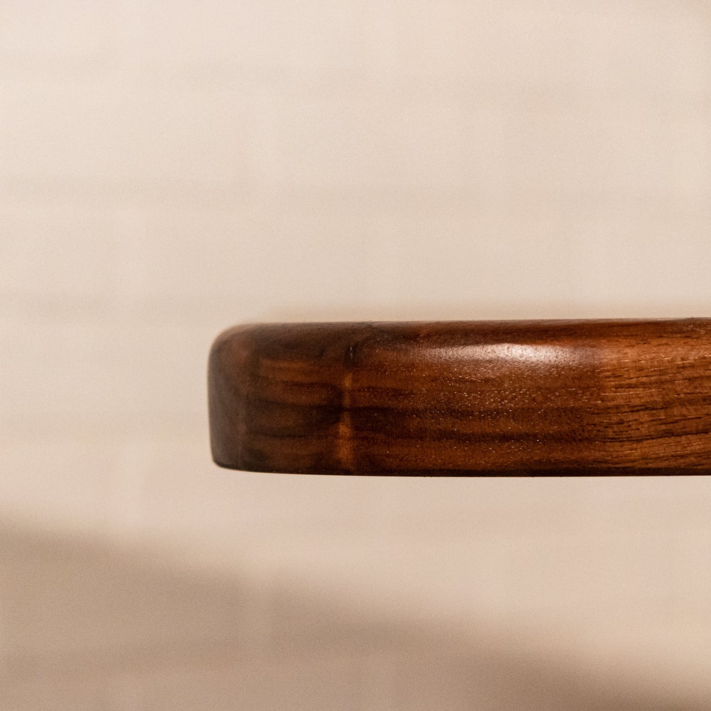 We finish the walnut with an all-natural oil that we hand rub into the wood. It gives the wood a matte finish. We like this finish because it is durable having been originally designed for floors and is food safe. More information about our finish is available here: https://www.loewendesignstudios.com/blogs/news/why-we-use-rubio-monocoat-to-finish-our-wood-tables
