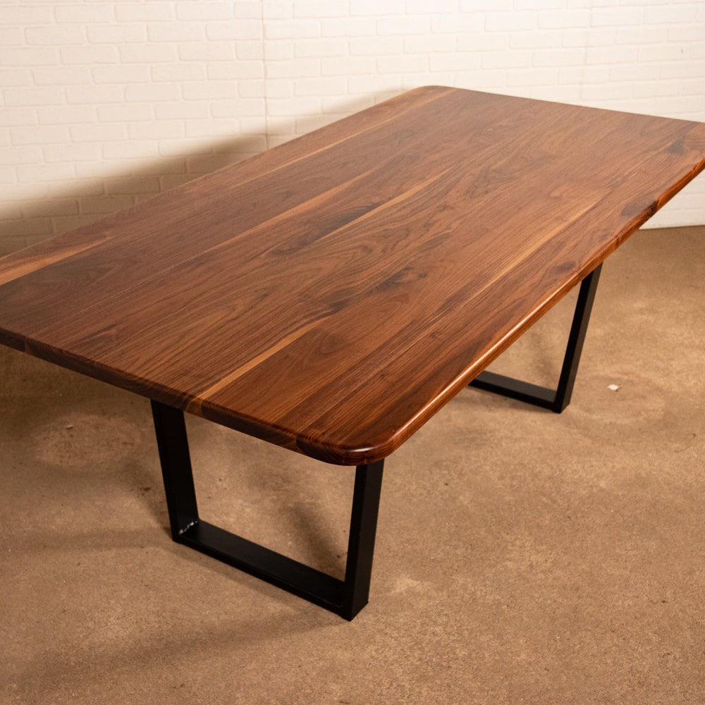 This table top is just under 2″ thick and has been made with locally sourced walnut. It features an Astoria edge. More details about the table can be found here: