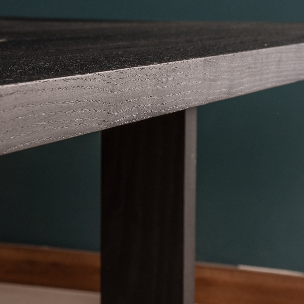 This table was finished with a black colored oil which highlights the two tone grain of the ash. If you are interested in other finishes or woods or would like to order swatches, check out this listing: https://www.etsy.com/listing/1300190033/