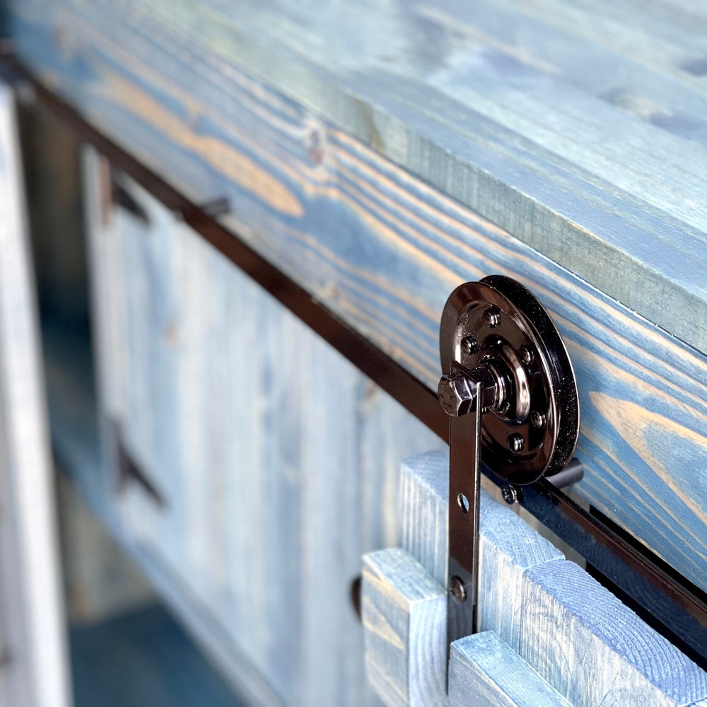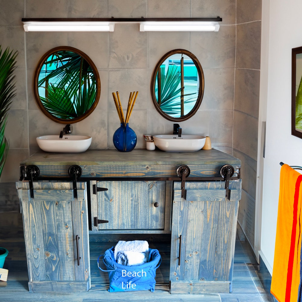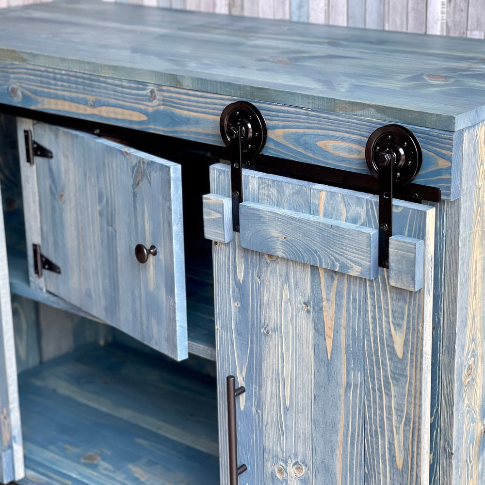 Blue Mid Century Beach Rustic Modern Bathroom Vanity w/Barn Doors Double Sink / Single Sink Farmhouse Rustic Console Wood Storage