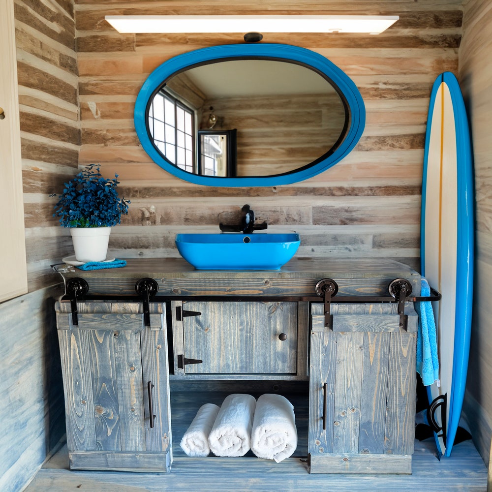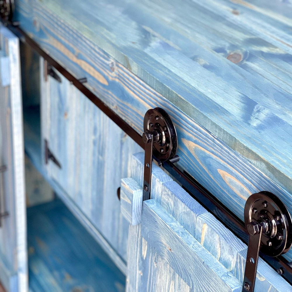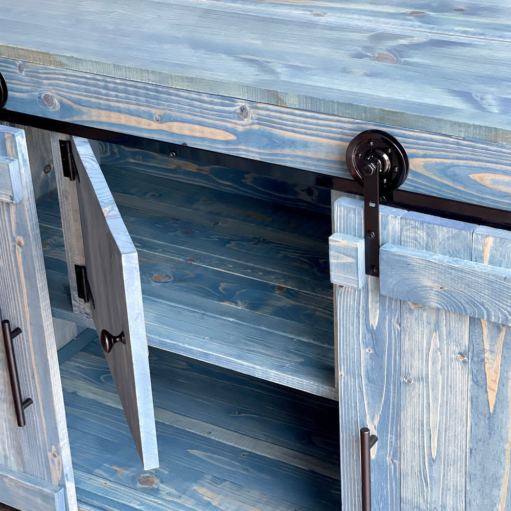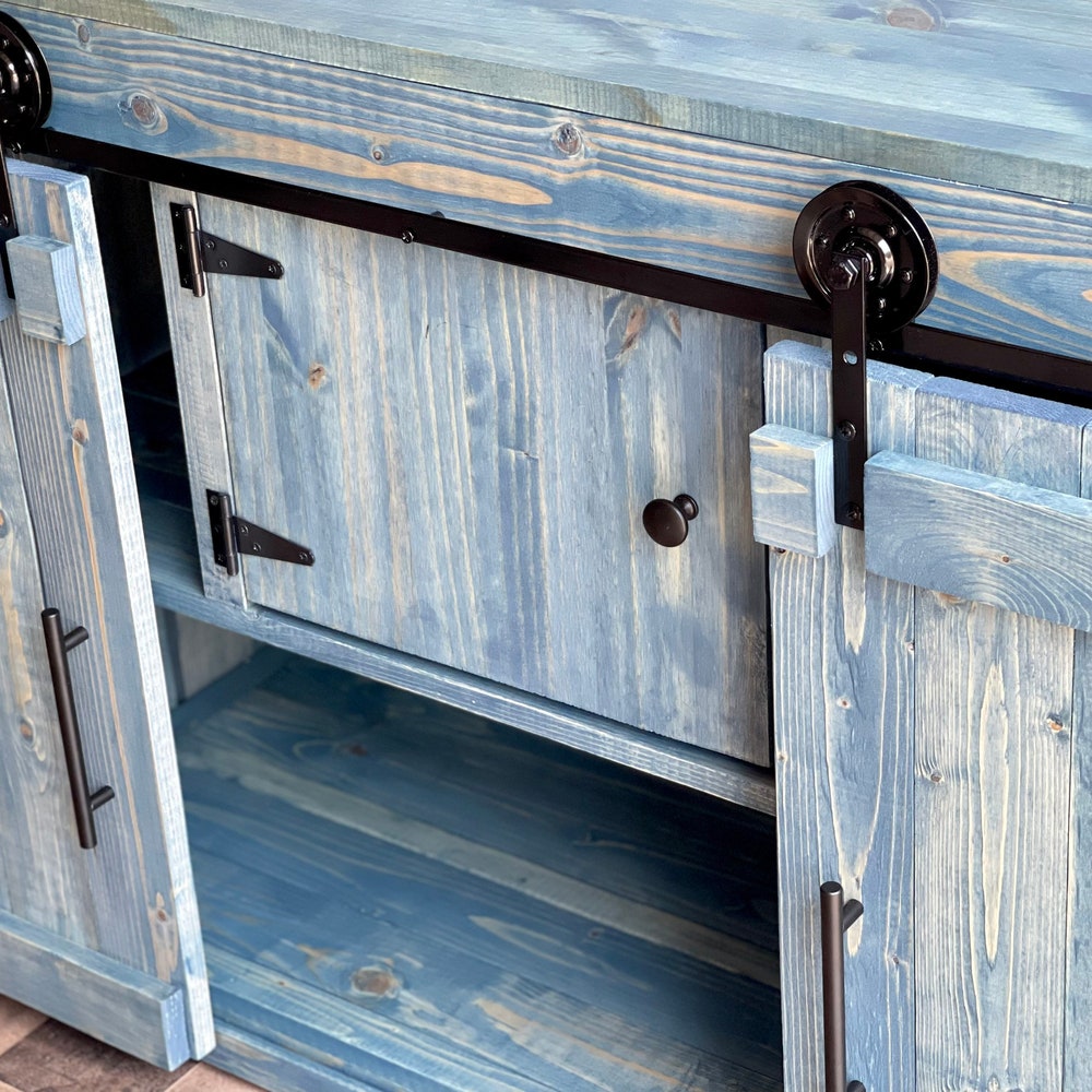 Blue Mid Century Beach Rustic Modern Bathroom Vanity w/Barn Doors Double Sink / Single Sink Farmhouse Rustic Console Wood Storage
