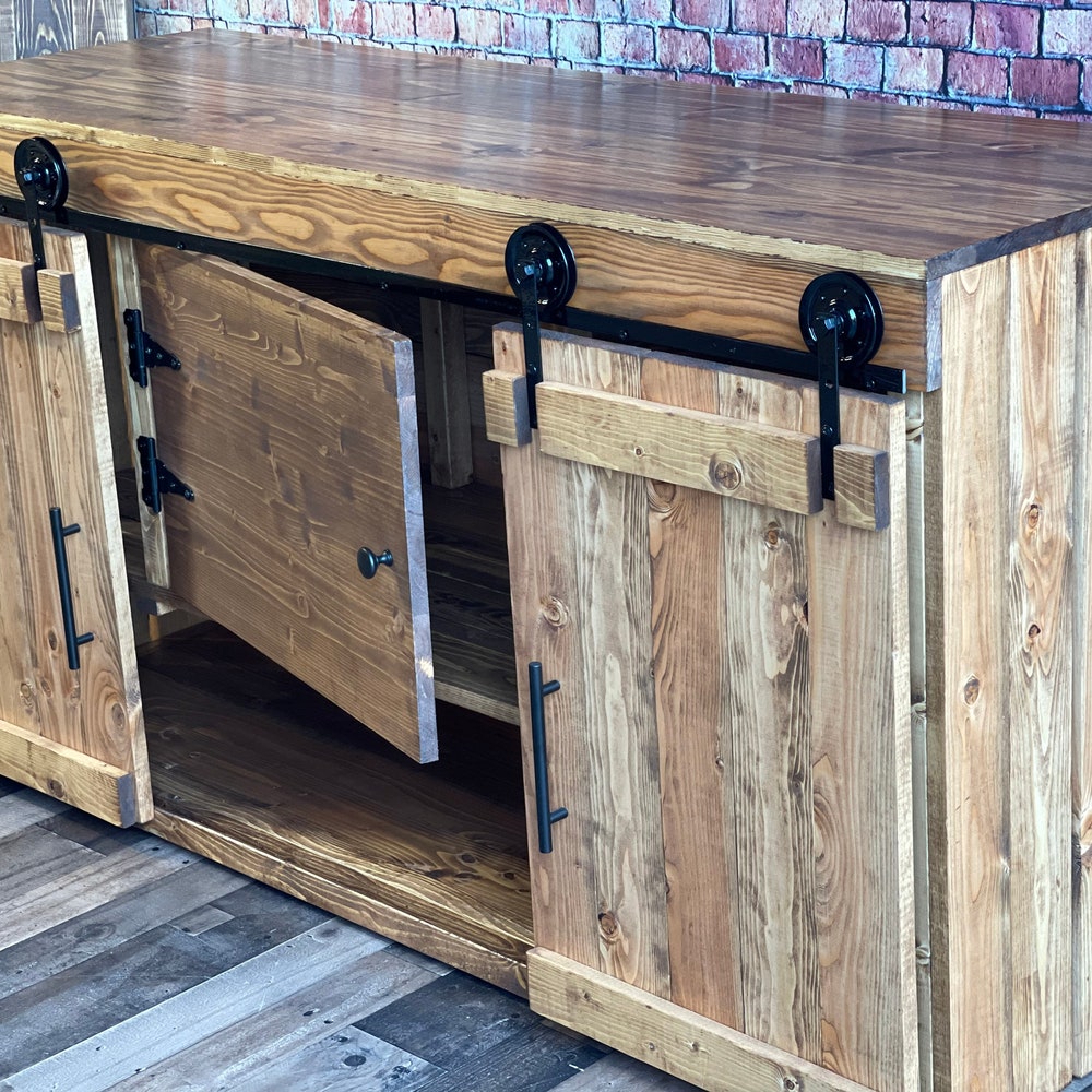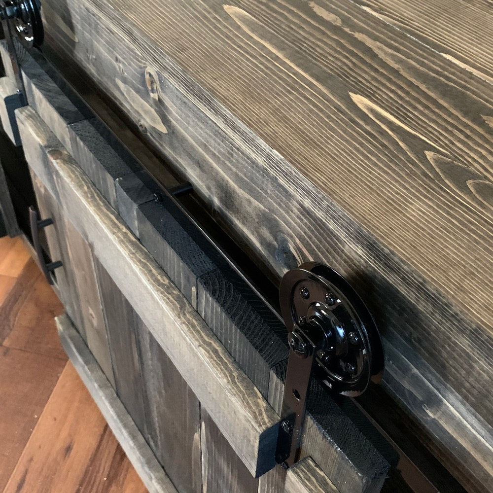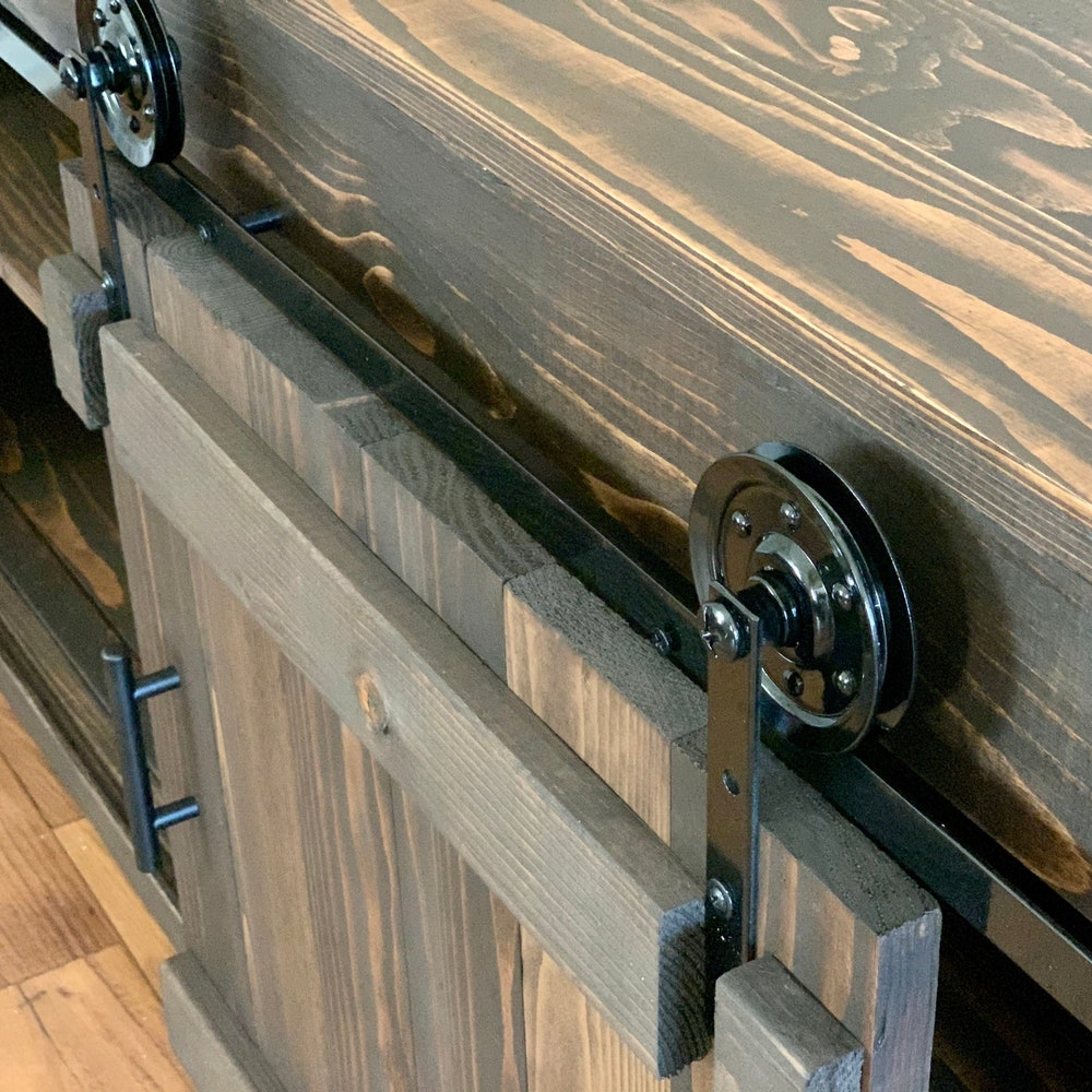 This Rustic Barn Door Style Bathroom Vanity will be perfect for any bathroom.