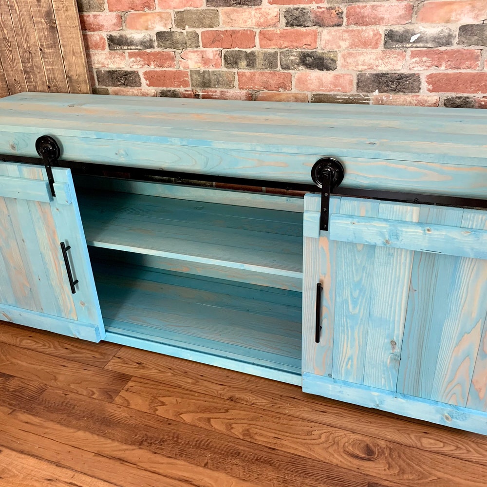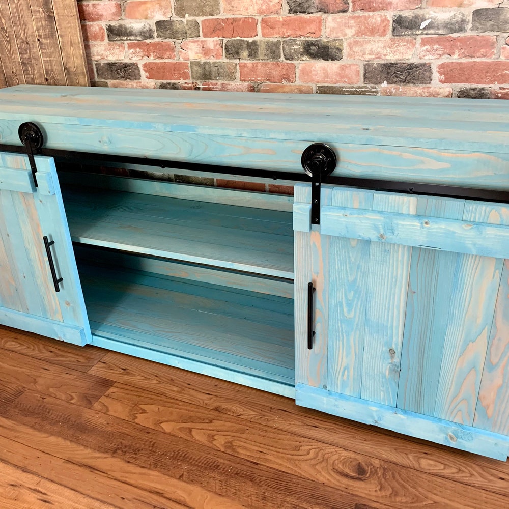 Beach Coastal Rustic Barn Doors TV Stand Console Buffet Table.
