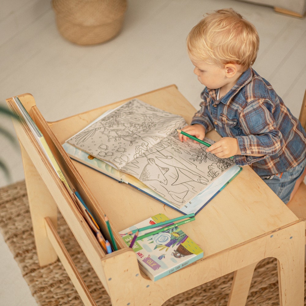 Board game table and chair, Montessori furniture, Desk organizer for Toddler, Custom play table, Kids activity table