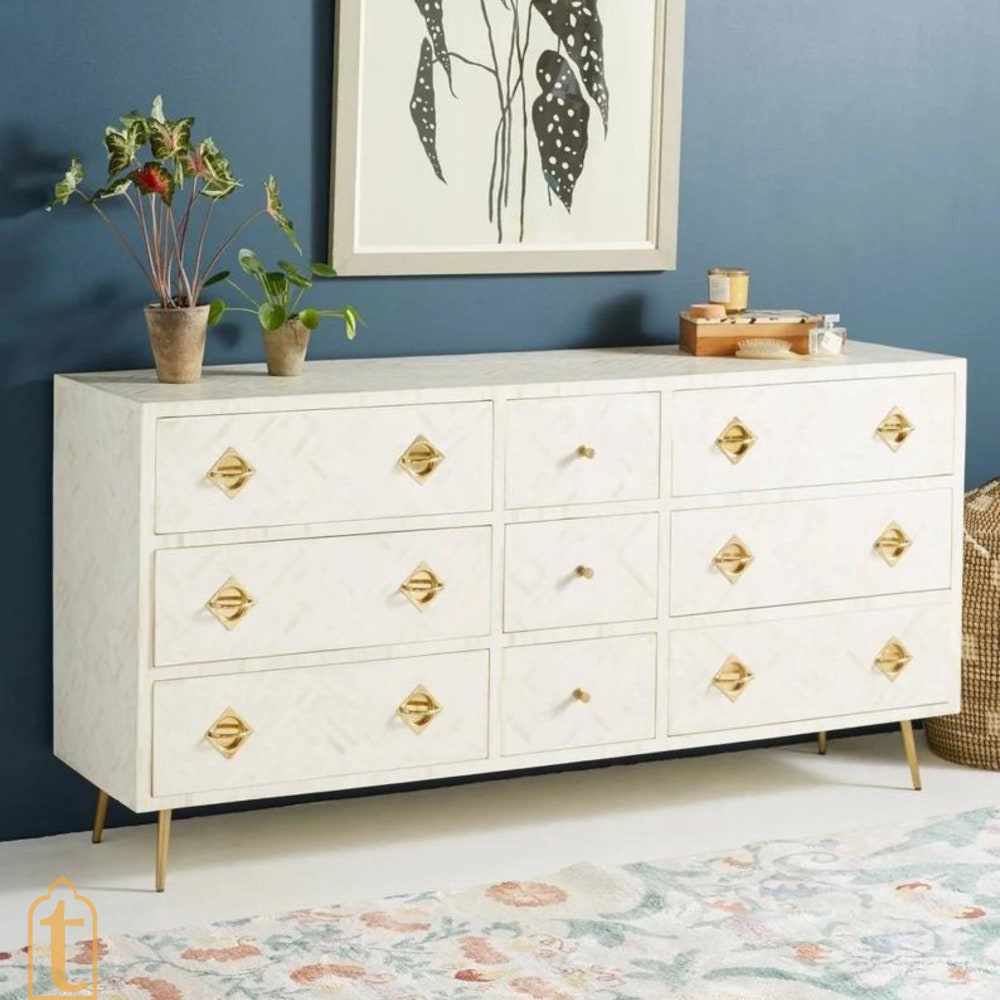 Bone inlay 9 Drawer Dresser, Bone Inlay Sideboard, Bone Inlay Chest of 9 Drawer , Bone inlay Buffet, Large Dresser, Storage Unit.