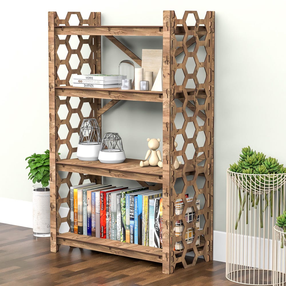 Bookshelf Bookcase Shelving Unit Wooden Etagere Housewarming Gift (29.5″w 12″d) Hexagonica