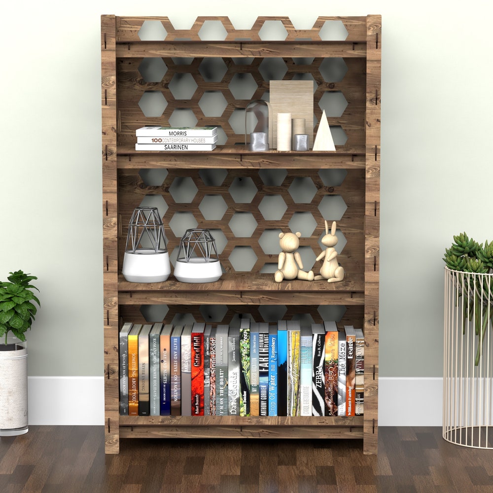 Bookshelf Bookcase Bookshelves Wooden Shelf Book Shelf “HONEYCOMB” (29.5″w 15″d) Hexagonica