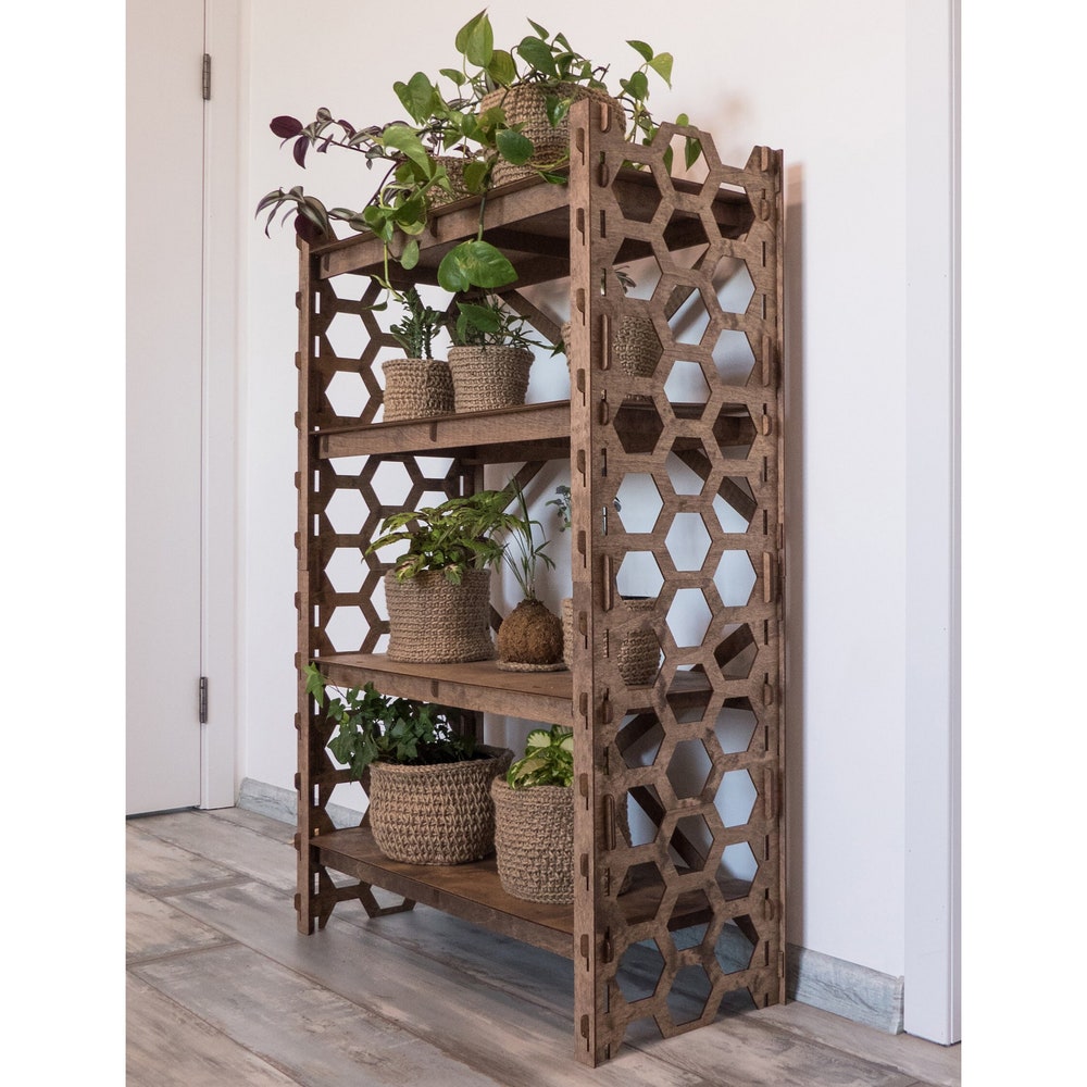 Hexagonica furniture bookshelves available in different styles like farmhouse furniture, mid century, modern plywood furniture.