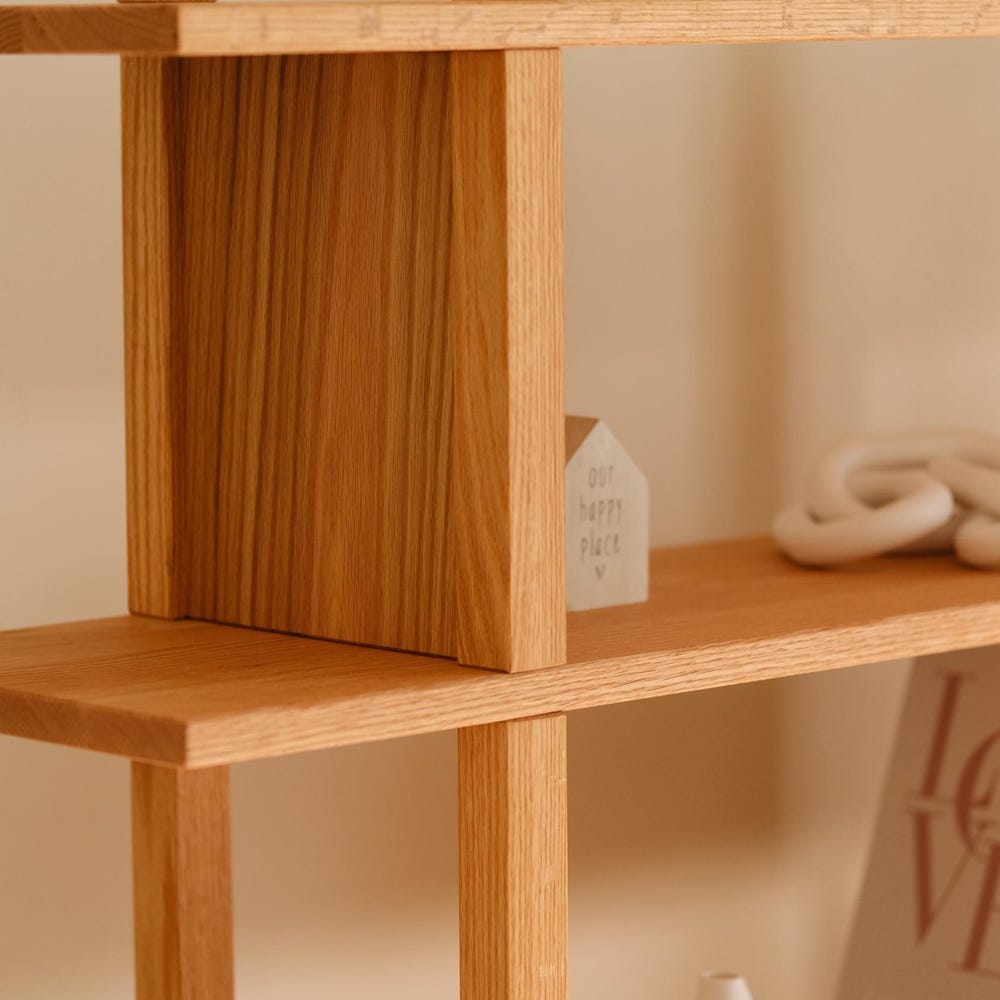 Improve your home, office and store space with our oak wood bookshelf – a beautifully handcrafted piece designed to bring both functionality and timeless elegance to any space. Made from high – quality oak, this bookshelf is perfect for displaying books, plants, decor, and more. Its unique design and sturdy free – tools construction make it a versatile addition to modern, rustic, or minimalist interiors.