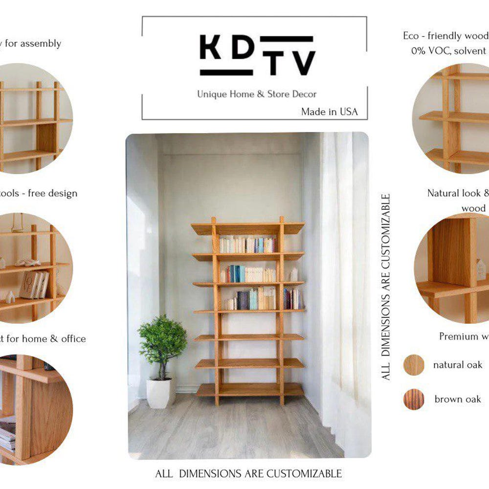Bookshelf Oak Wood Minimalist decor Modern storage Living Room Bedroom Office Entryway organization Open Shelving Design Handmade Furniture