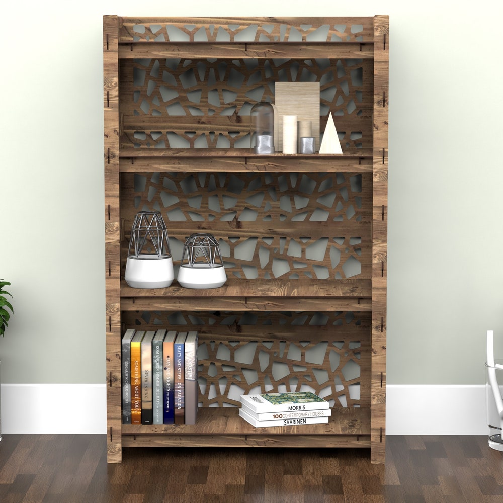 Bookshelf Wood Bookshelf Bookcase Display Case Plant Bookshelf Wooden Shelf “STONE” (29.5″w 48″h) Hexagonica