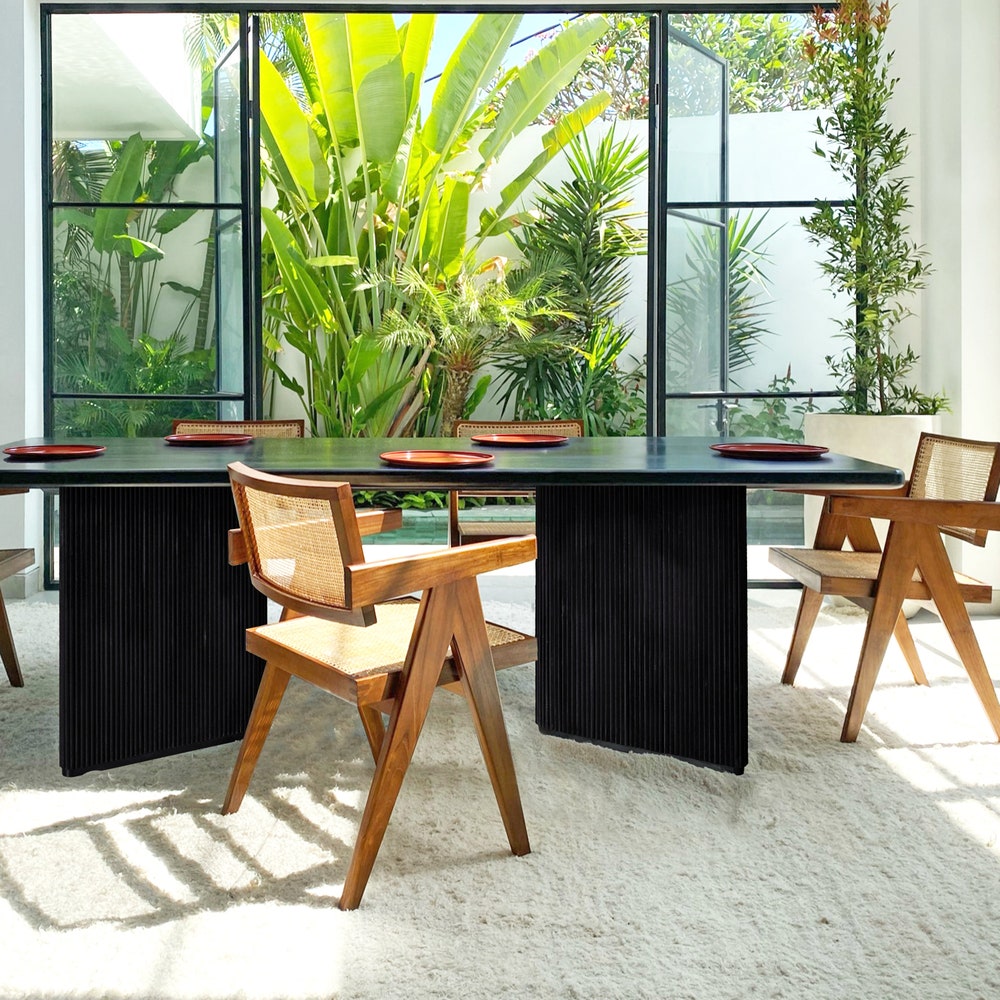 The Boomerang Teak Dining Table by TreeHause is handcrafted by master artisans. The design is inspired by the Chandigarh Capitol Complex Library table. Every angle stuns in this sophisticated statement-making dining table. The angular yet rounded teak veneer top is supported by two boomerang shaped bases framed with a dynamic teak ribbing adding an unexpected […]