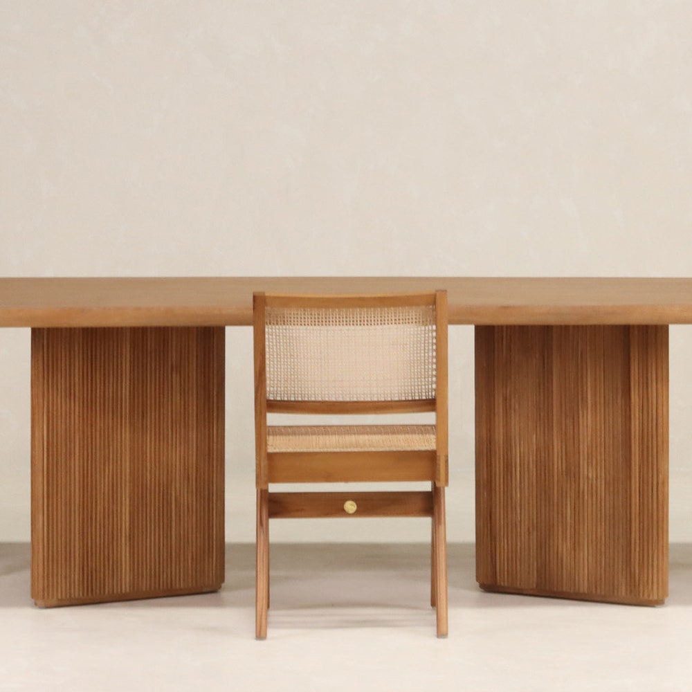 The Boomerang Teak Dining Table by TreeHause is handcrafted by master artisans. The design is inspired by the Chandigarh Capitol Complex Library table.