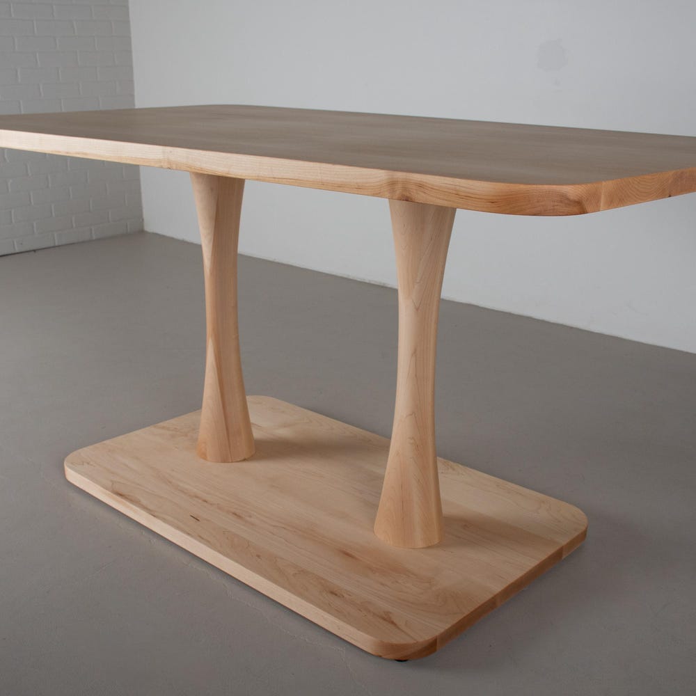 Breakfast Nook Table, Solid Wood Double Pedestal Table, Rectangle Maple Kitchen Table, 60″ Kitchen Dining Table for a Banquette