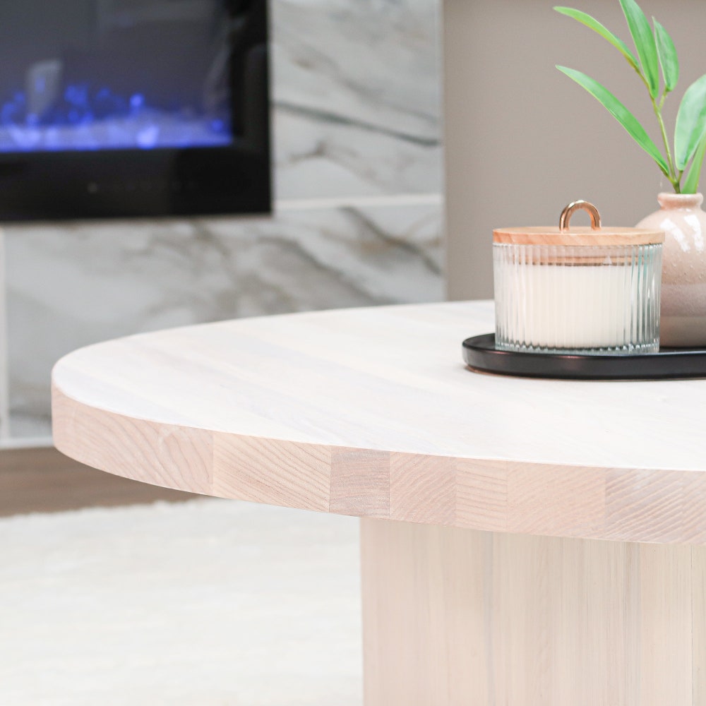 •Overview Our round coffee tables are designed to be aesthetically pleasing and conveniently efficient. Simple silhouettes and wooden accents complement traditional and modern design styles. Our coffee tables are made in the USA of solid natural ash hardwood. Natural ash has one of the most beautiful grain patterns and is one of the most desired […]
