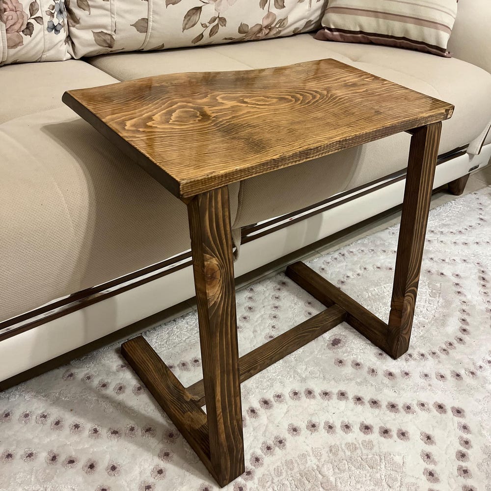C table Made of Walnut, Sofa Table, Walnut Remote End Table for Sofa, Rectangular Side Table for Living Room, Wooden Laptop Table, Home Gift