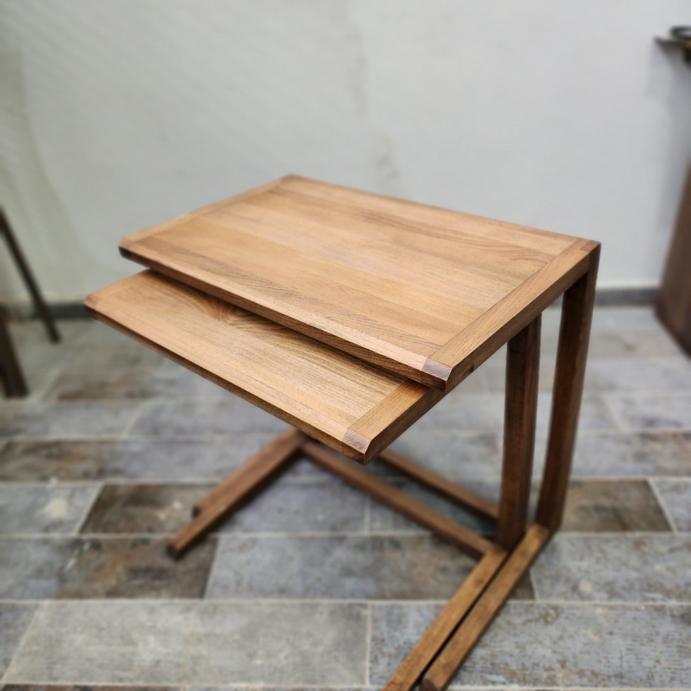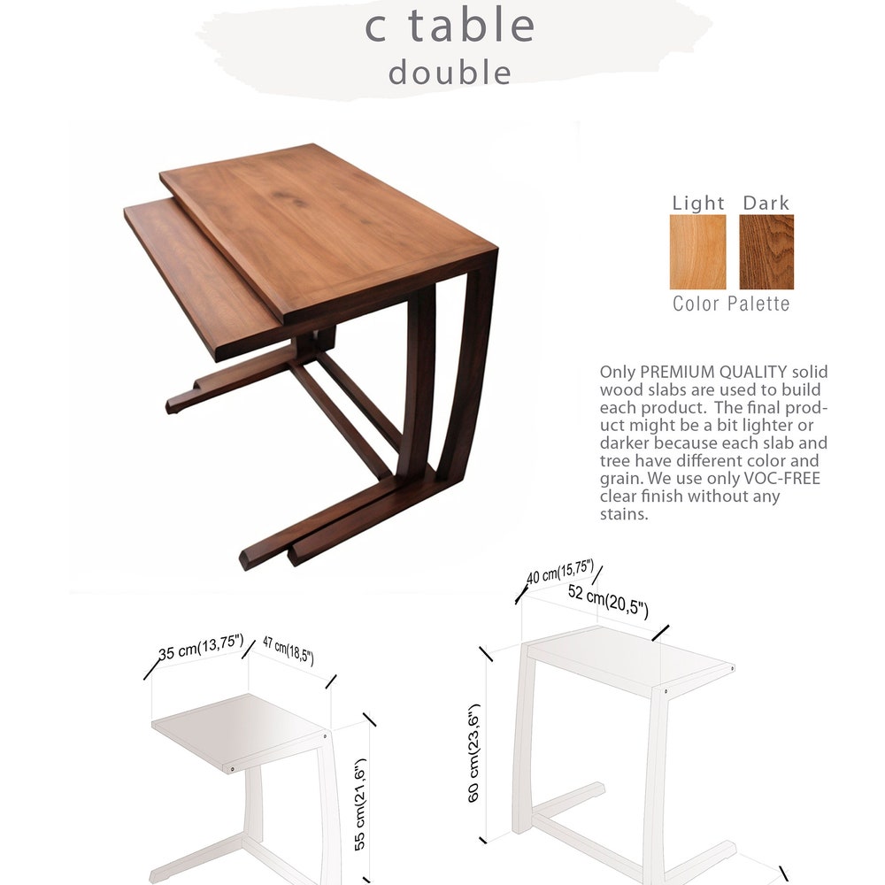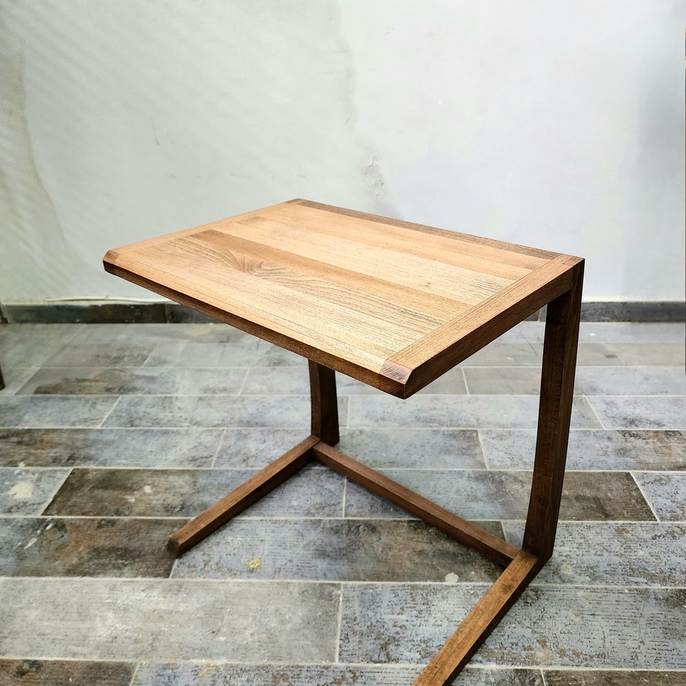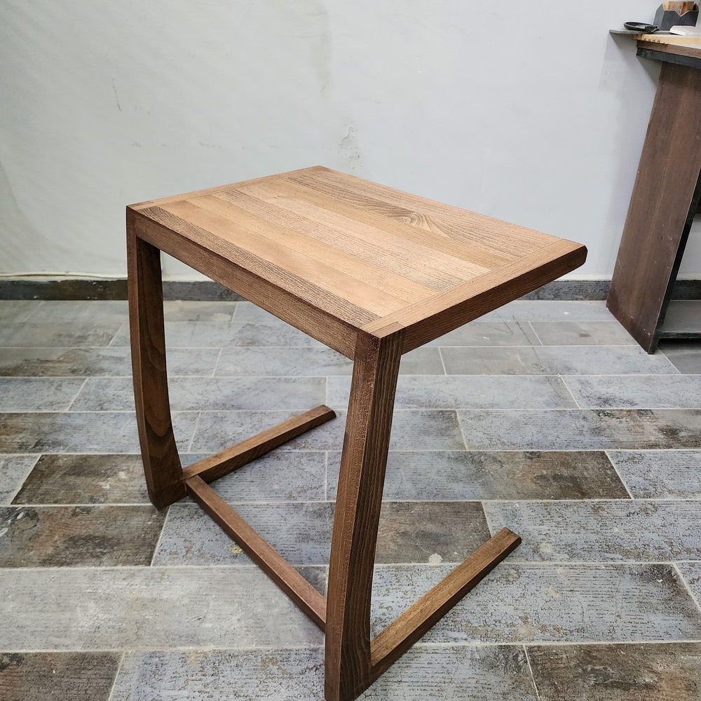 C Table Solid Wood Double, C Shaped Coffee Table, Wooden Side Table, Modern Coffee Table, Solid Wood Laptop Stand, Handmade Wooden C Table