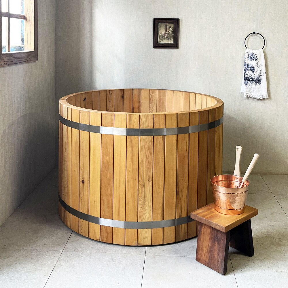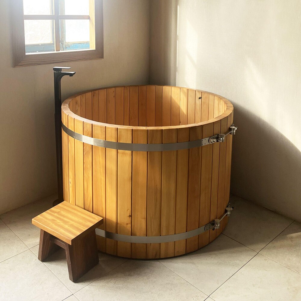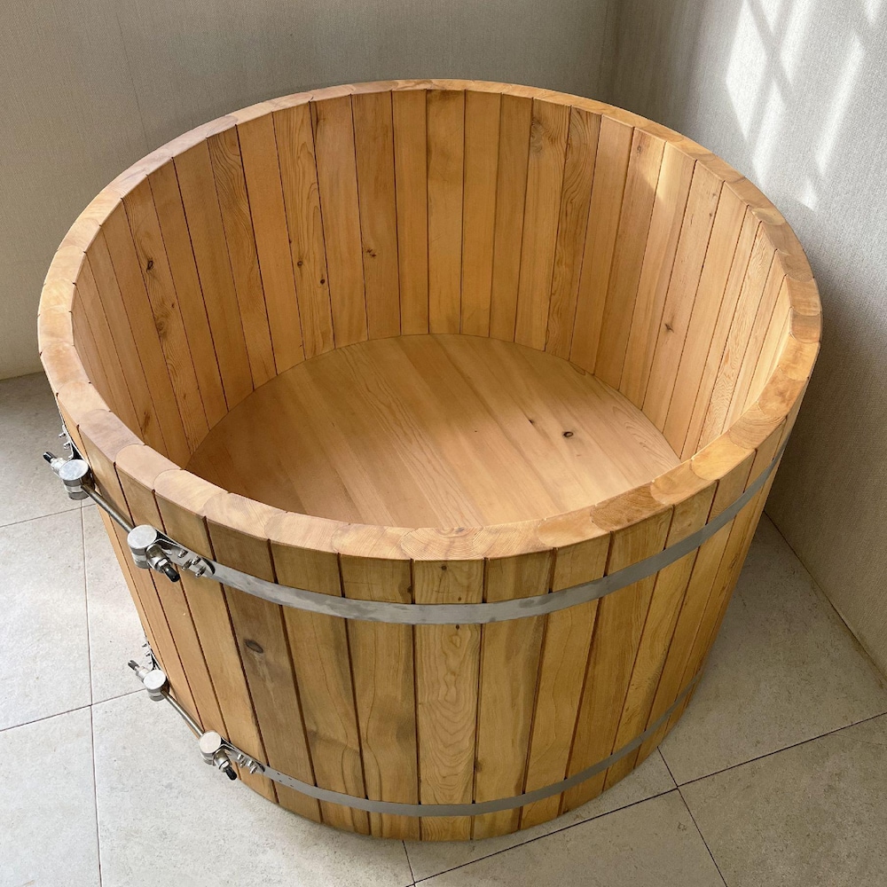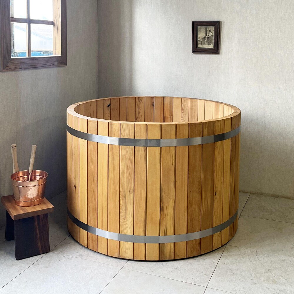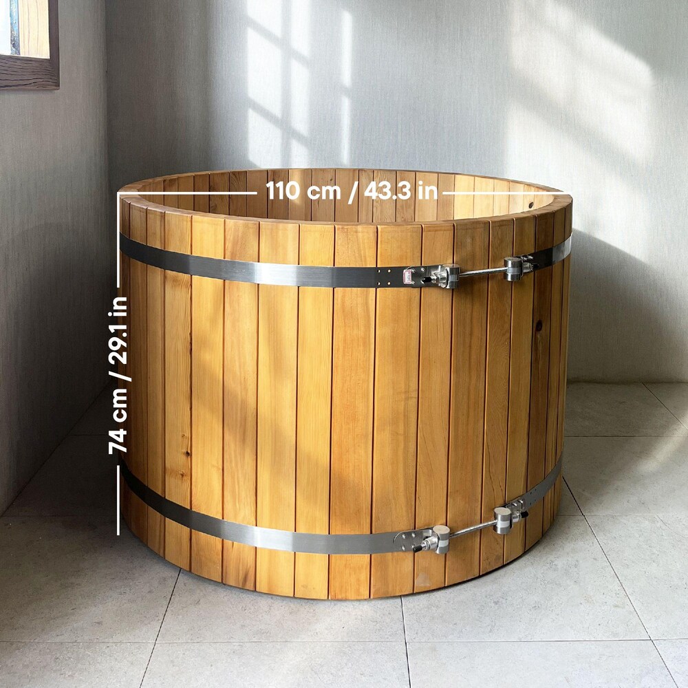 Barrel type cedar wood soaking tub made from Turkish cedar wood