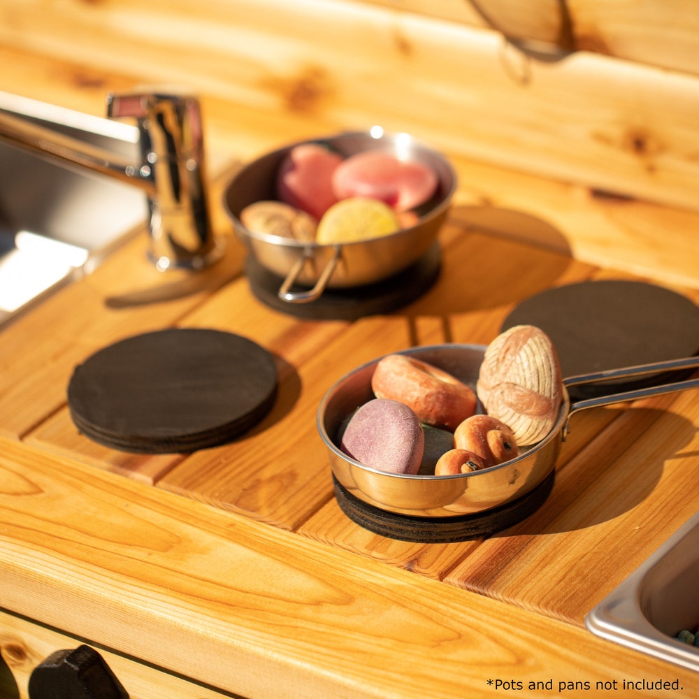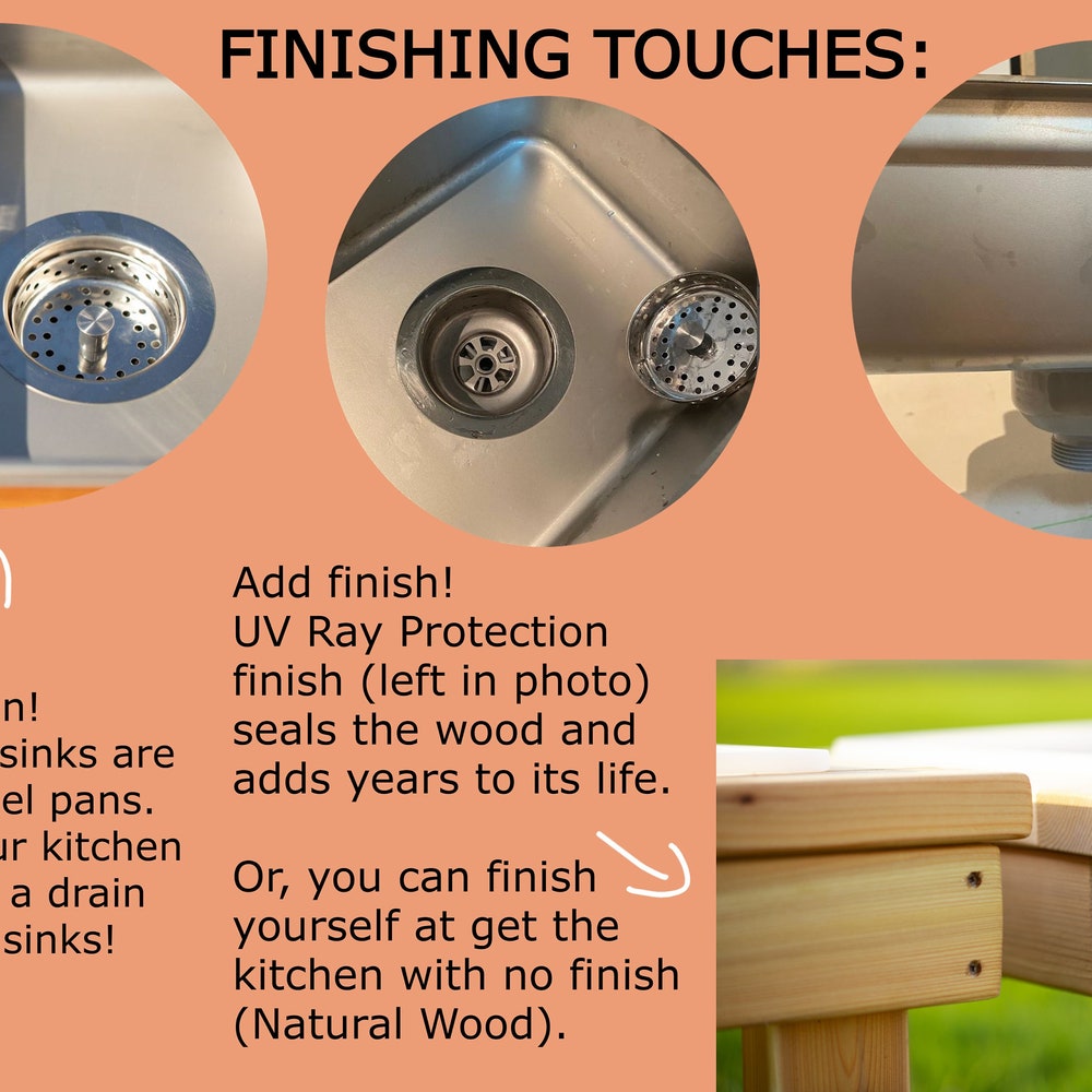 NEW: Add a drain to your mud kitchen! Have us install a drain in one or both sinks. Comes with a stopper.