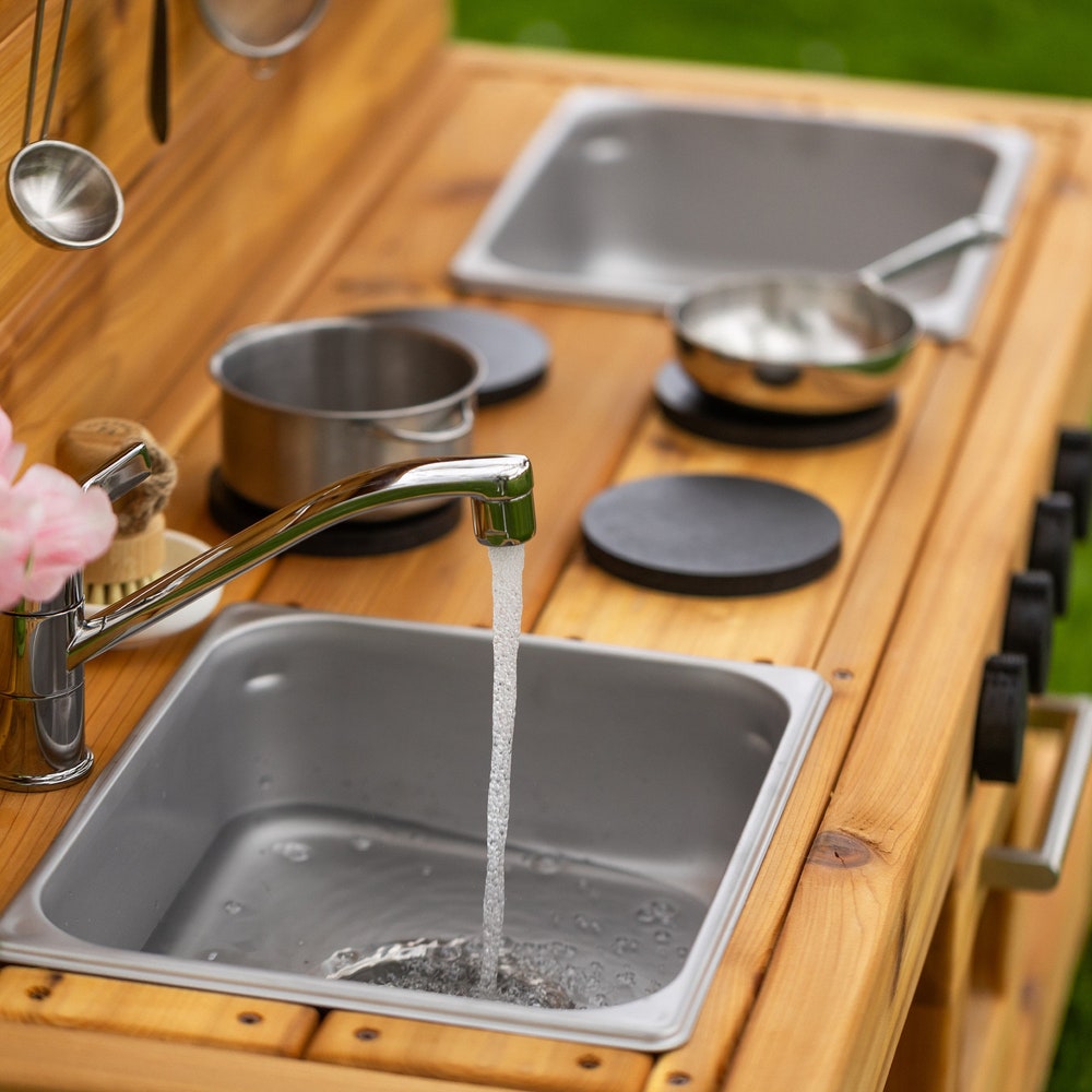 Centered Working Sink Mud Kitchen with Oven | Cedar Play Kitchen for Toddlers and Kids | Sensory Play | Sand Water Table | Montessori