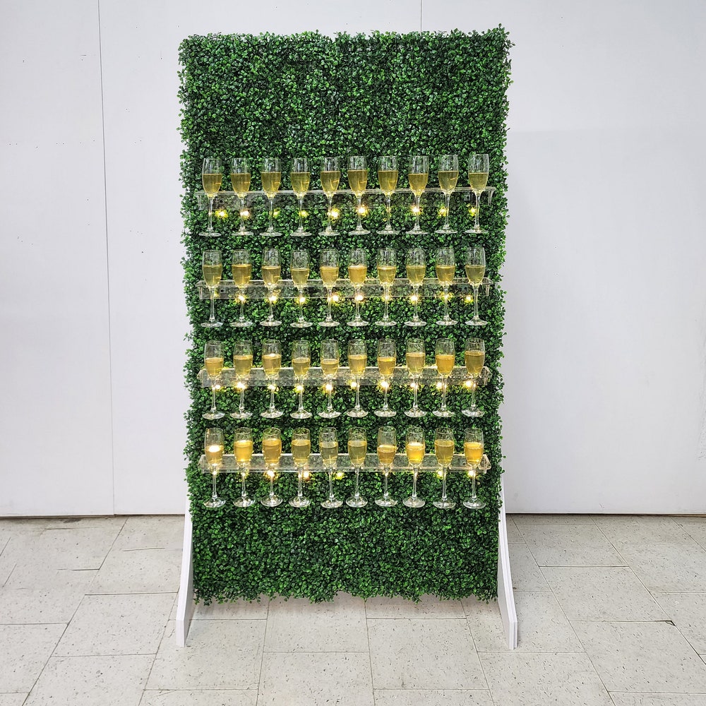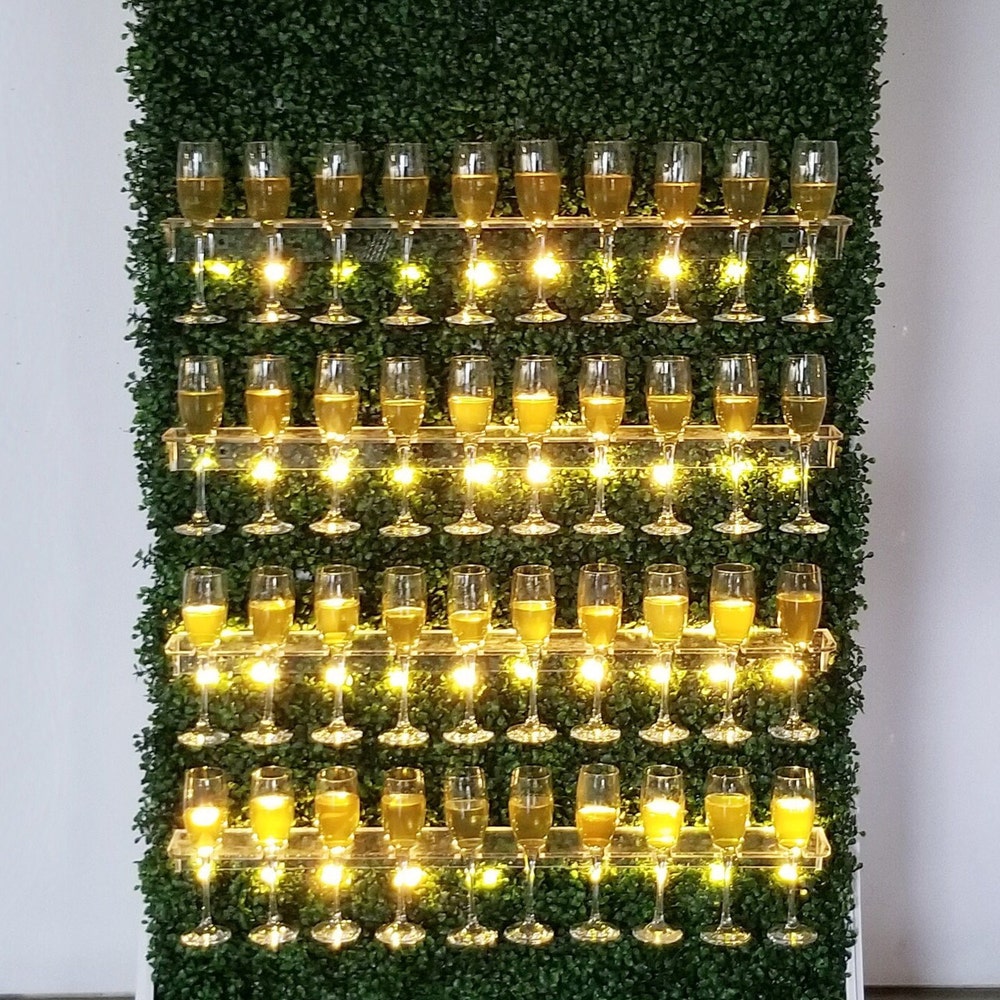 Champagne wall with light | 40 Glasses drink Wall | Wedding decorations | Clear shelf glass holder | treat wall greenery