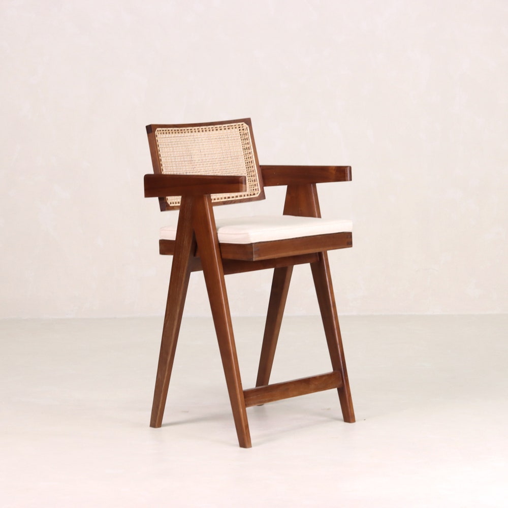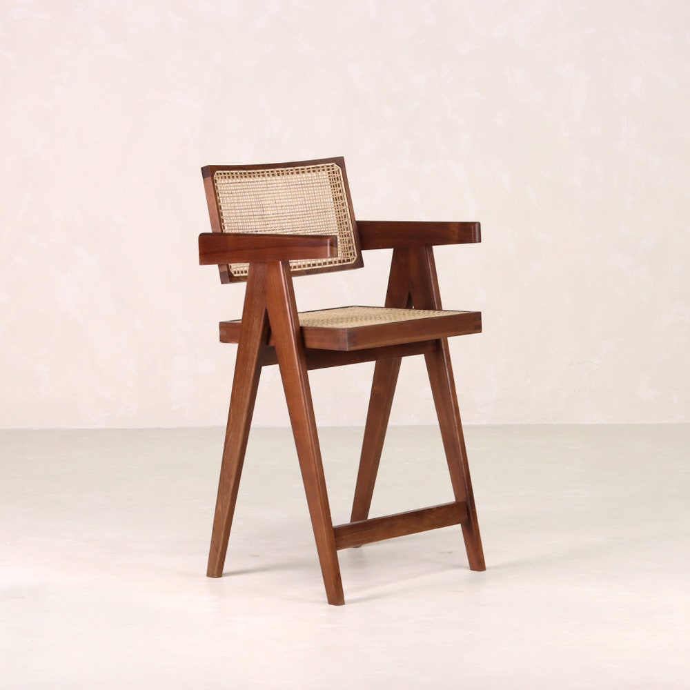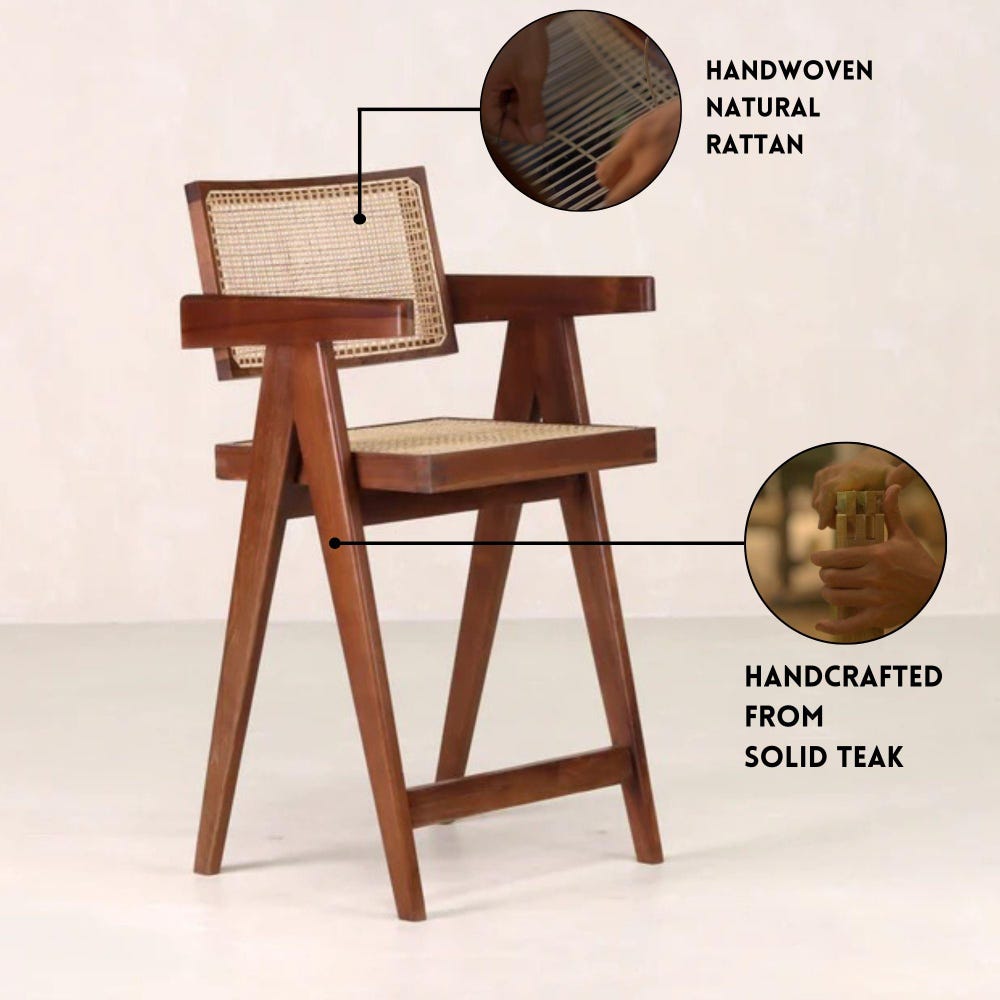 Chandigarh Floating Back Armchair – Counter Stool – Teak and Handwoven Rattan