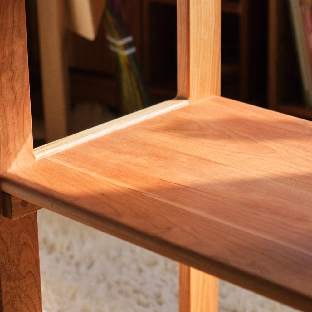 Simple Assembly – you don’t need any tool but the assembly time will be less than 5 minutes with a power hex head screwdriver. Solid Cherry Wood, no mdf, plywood or particle board. We finish it with our All Natural Beeswax Polish (organic jojoba oil and local beeswax). Since this is a light finish, you may want to re-apply when it looks dry, at least annually.