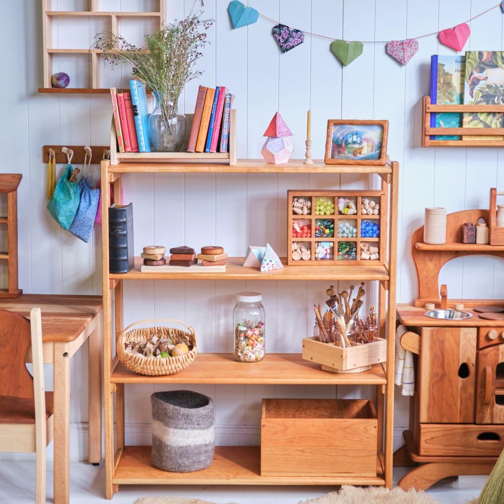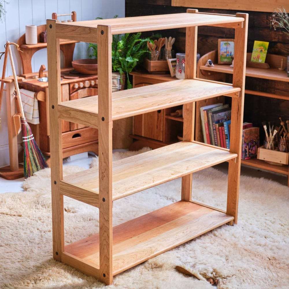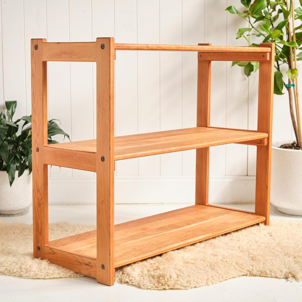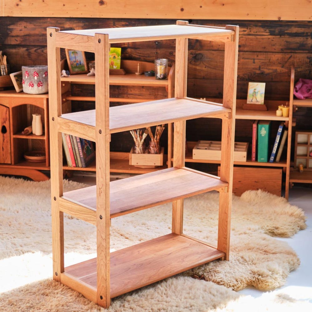 Cherry 3 or 4 Shelf Open Shelving – Select 28 inch or 36 inch Lengths: Solid Wood Made in USA