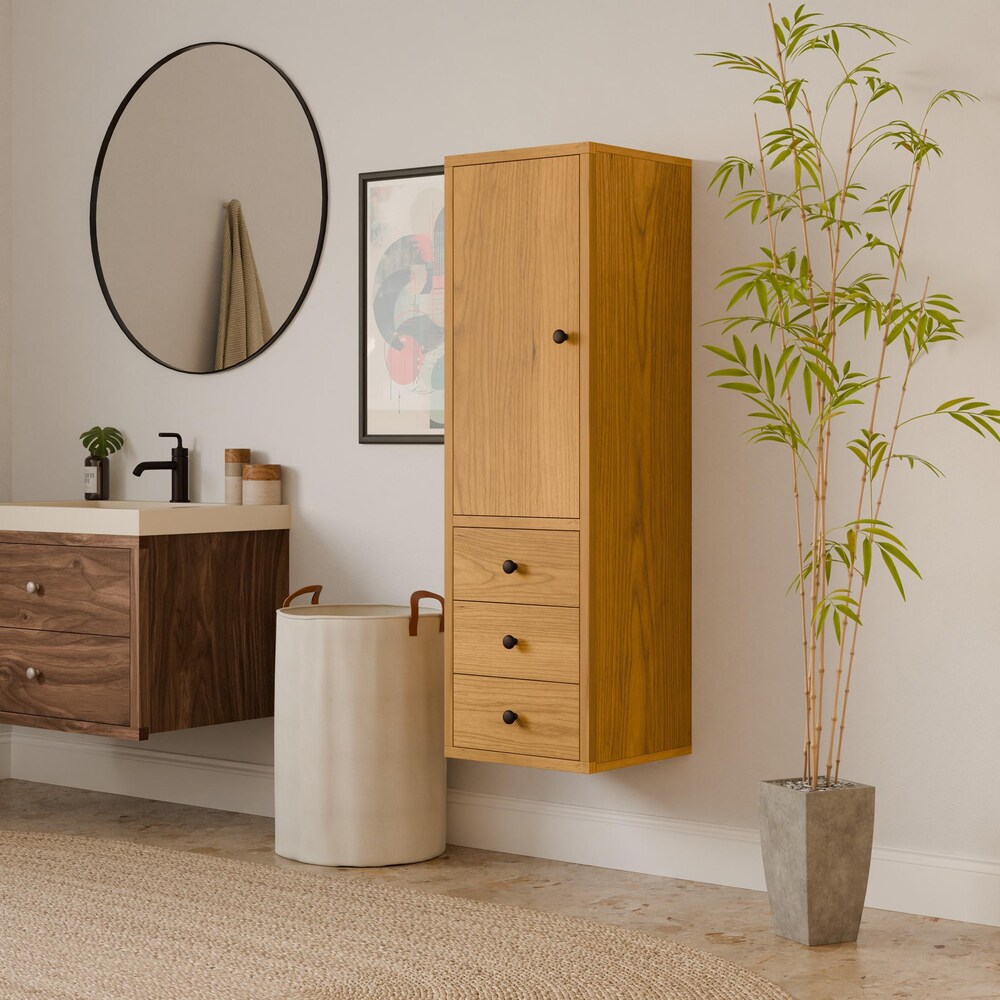 Arrives fully assembled at your door. Built from premium grade 3/4″ real Cherry veneer with a durable 1/2″ back, this bathroom storage cabinet is built for strength and longevity.
