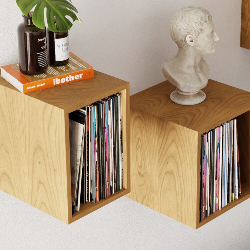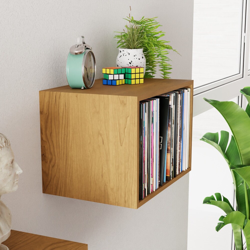 Cherry Floating Vinyl Record Storage Shelves