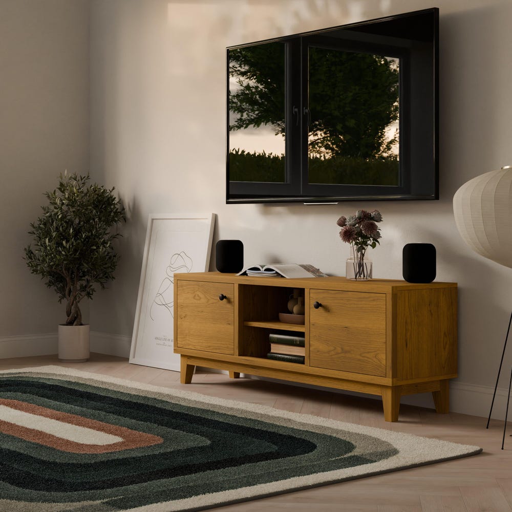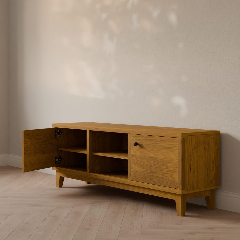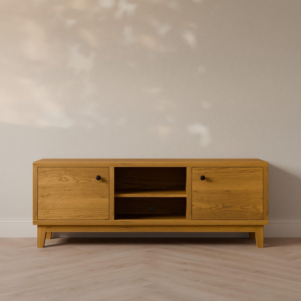 Arrives fully assembled at your door. Built from premium grade 3/4″ real Cherry veneer with a 1/2″ back, Solid Cherry face frame and legs, this Media Table is built for strength and longevity.