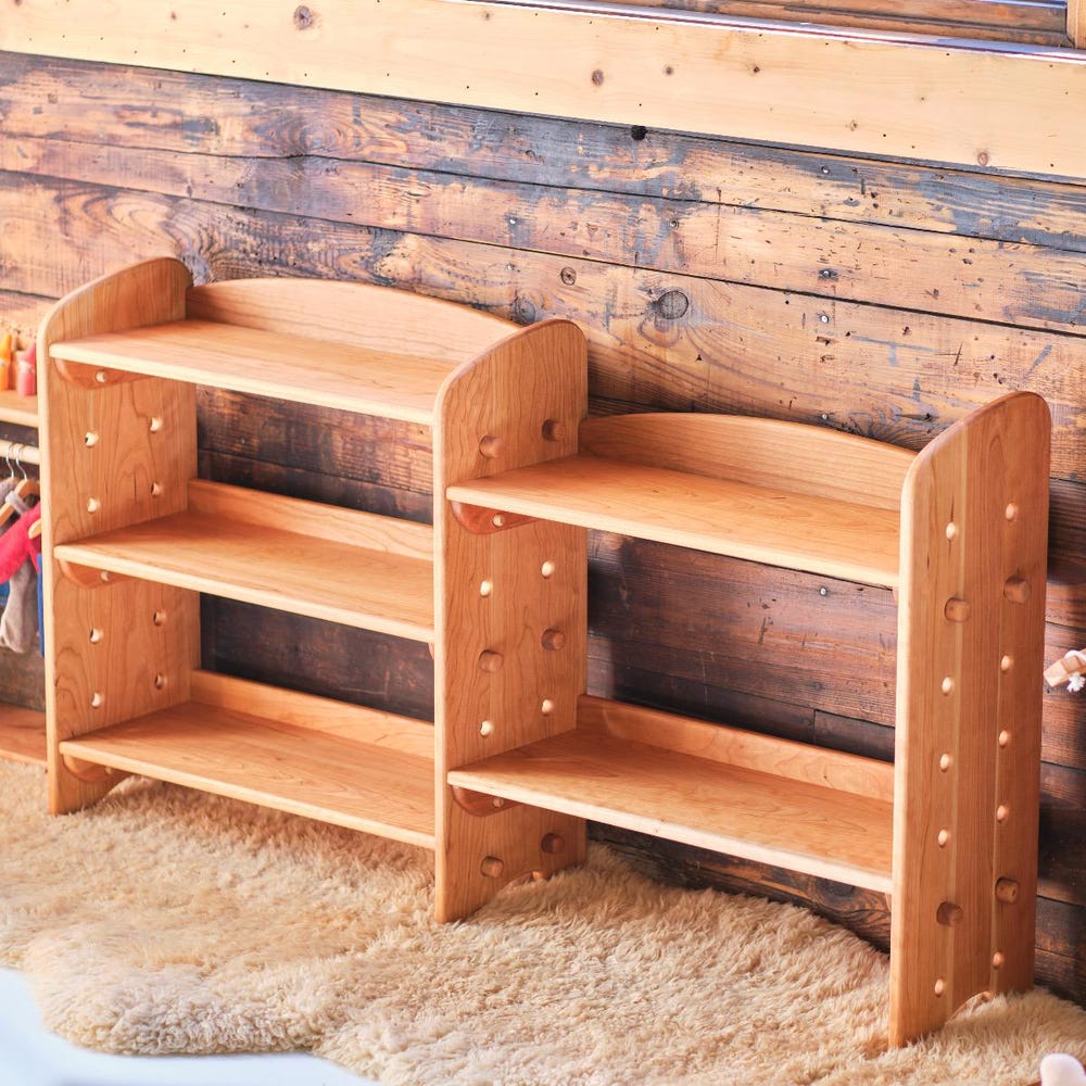 Our adjustable solid cherry wood bookcase lets you create a shelving system that works for you in your space. Made in the USA, each unit can function either as a stand alone bookcase or as part of a multi-part shelving unit. Crafted from solid cherry wood, our bookcases contain NO MDF, particle board or plywood. We’re sure you’ll love the beauty of the cherry wood as well as the unique design of our adjustable bookcases.
