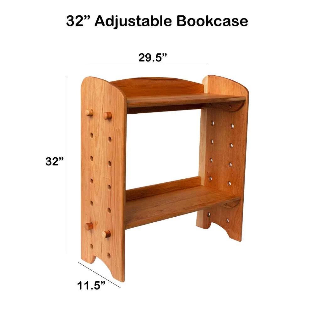 Cherry Wood Adjustable Shelving Unit/Bookcase – 32 inch Tall – 2 or 3 Shelf Option – Ability to connect additional shelves