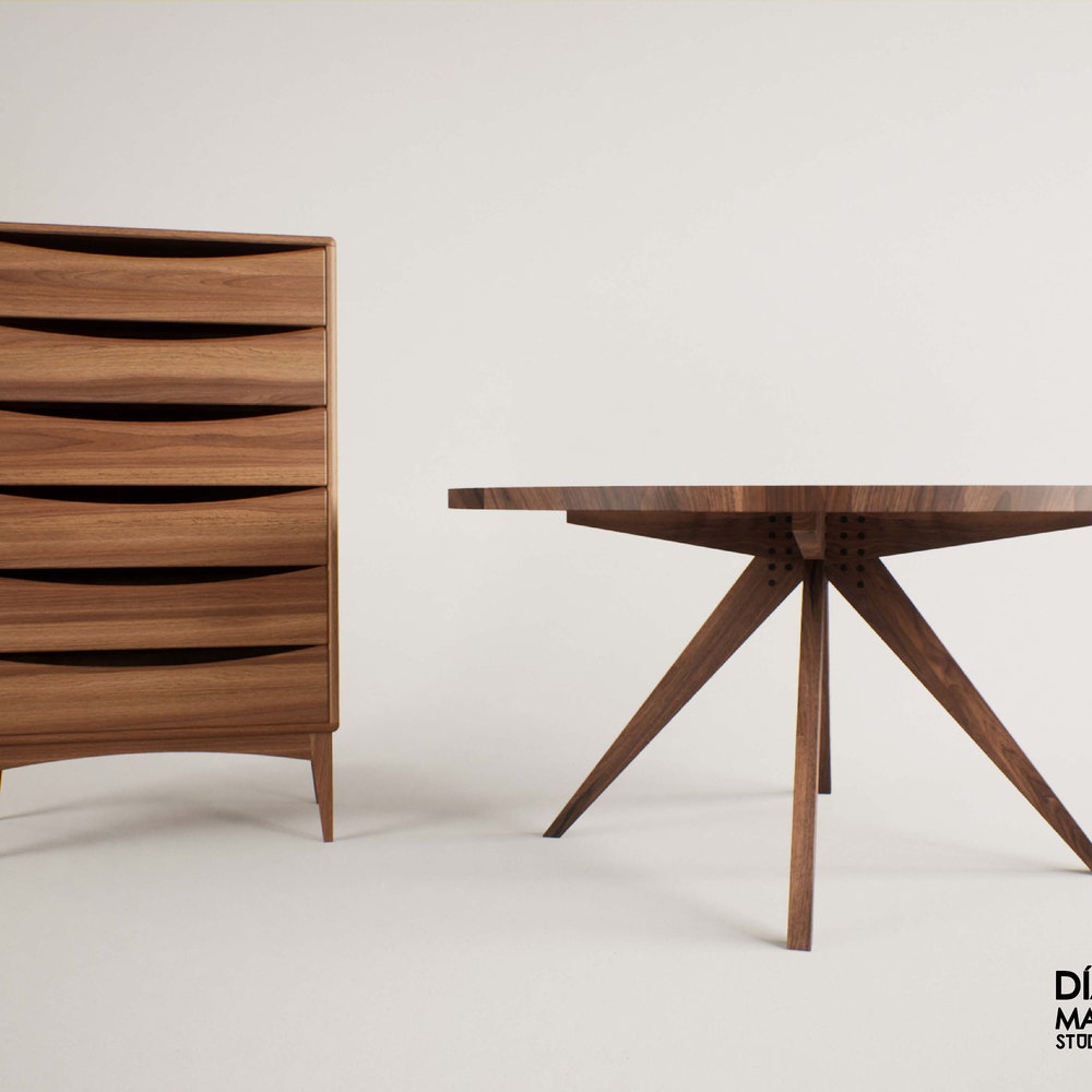 Chest of drawers made of American walnut wood consisting of six drawers. The arch that forms each drawer allows you to put your hand inside to open it. Most of my pieces have one element in common, the arches. The balance of rectilinear lines coexisting with organic shapes such as arches has always caught my […]