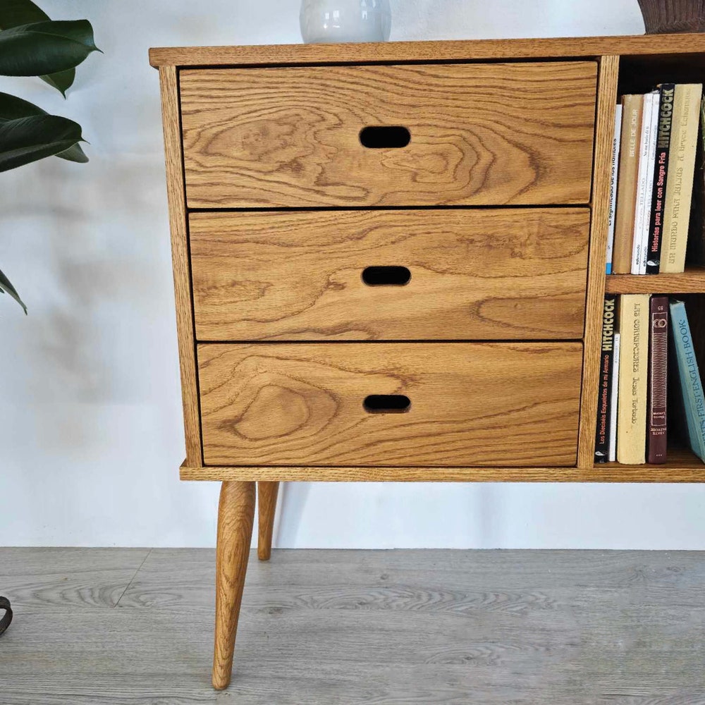 3-Drawer Oak Dresser / Solid Wood Sideboard / Mid Century Style Chest of Drawers