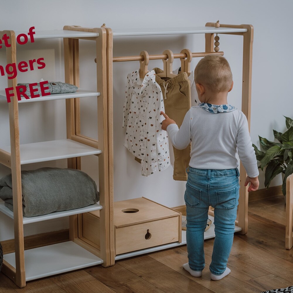 Child Montessori clothing rack type B with shelf combined with MAXI shelf Kid wardrobe Kindergarderobe Gift for kids