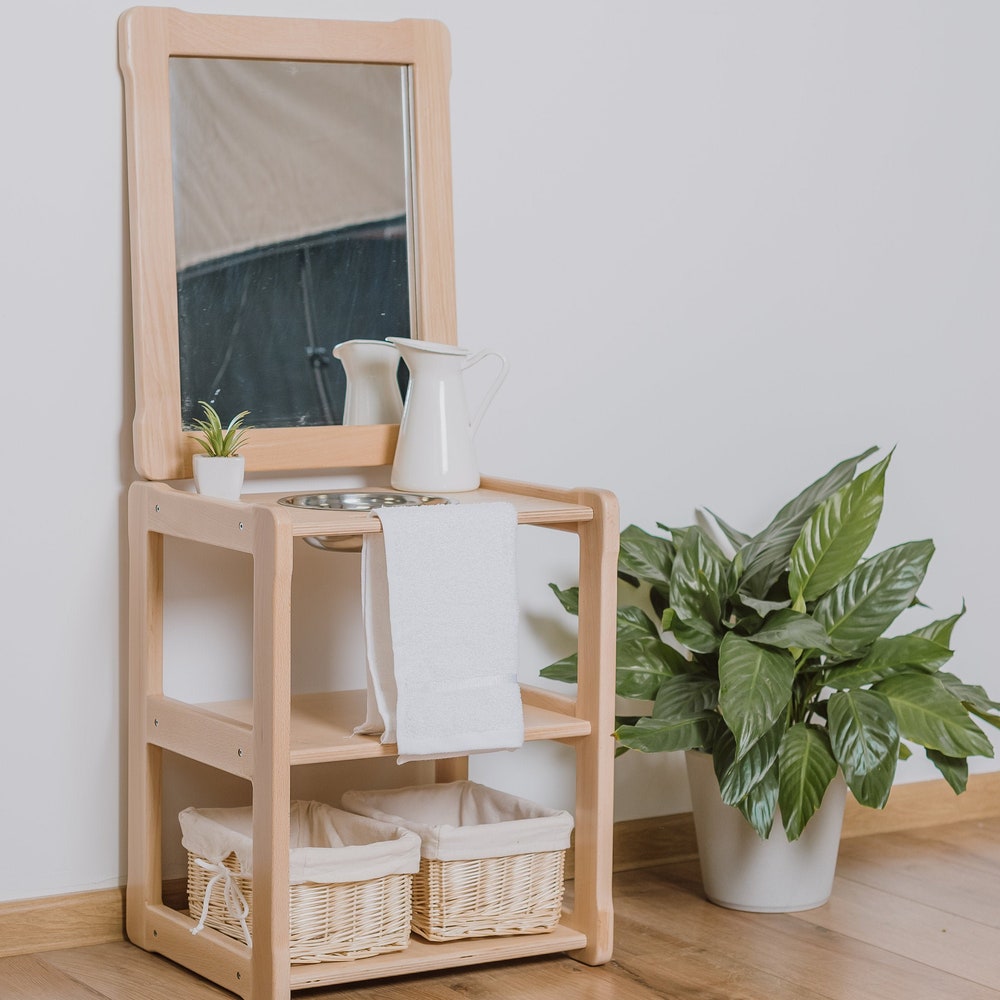 Child Montessori washbasin toddler Waschtisch kind Type A, WITH mirror combined with a MINI shelf Gift for kids