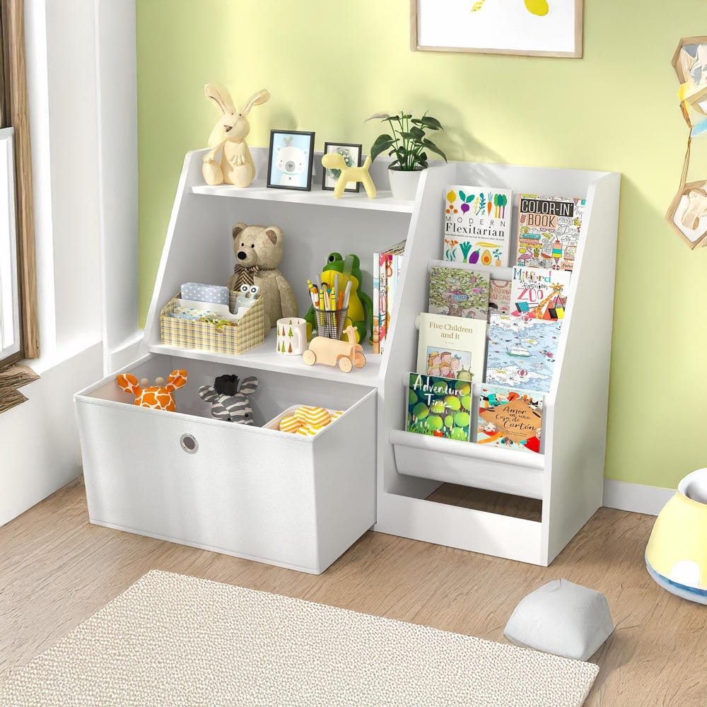 Crafted from high-quality engineered wood and durable linen fabric, this bookshelf is built to last through years of use. Its strong frame ensures it can hold books, toys, blocks, and more, while maintaining stability and safety. The non-toxic finish and smooth corners make it 100% child-safe.
