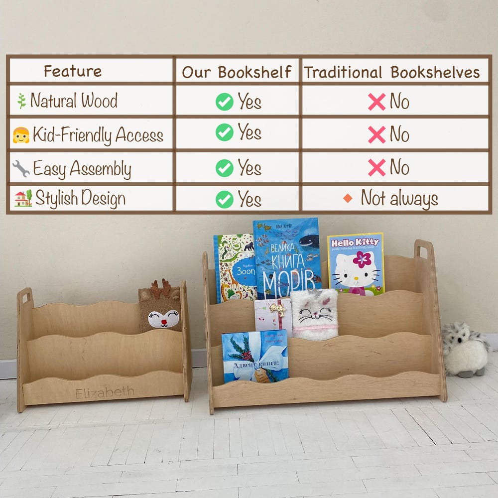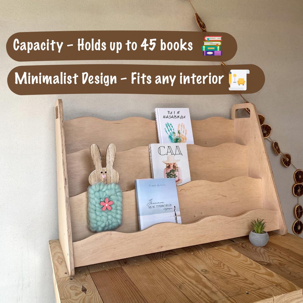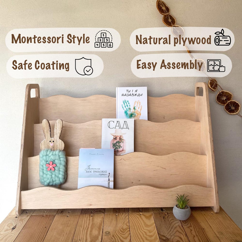 Children’s Bookshelf, Natural Wooden Montessori Bookcase, Kids Room Storage, Nursery Bookshelf, Modern Wood Shelf, Waldorf Furniture