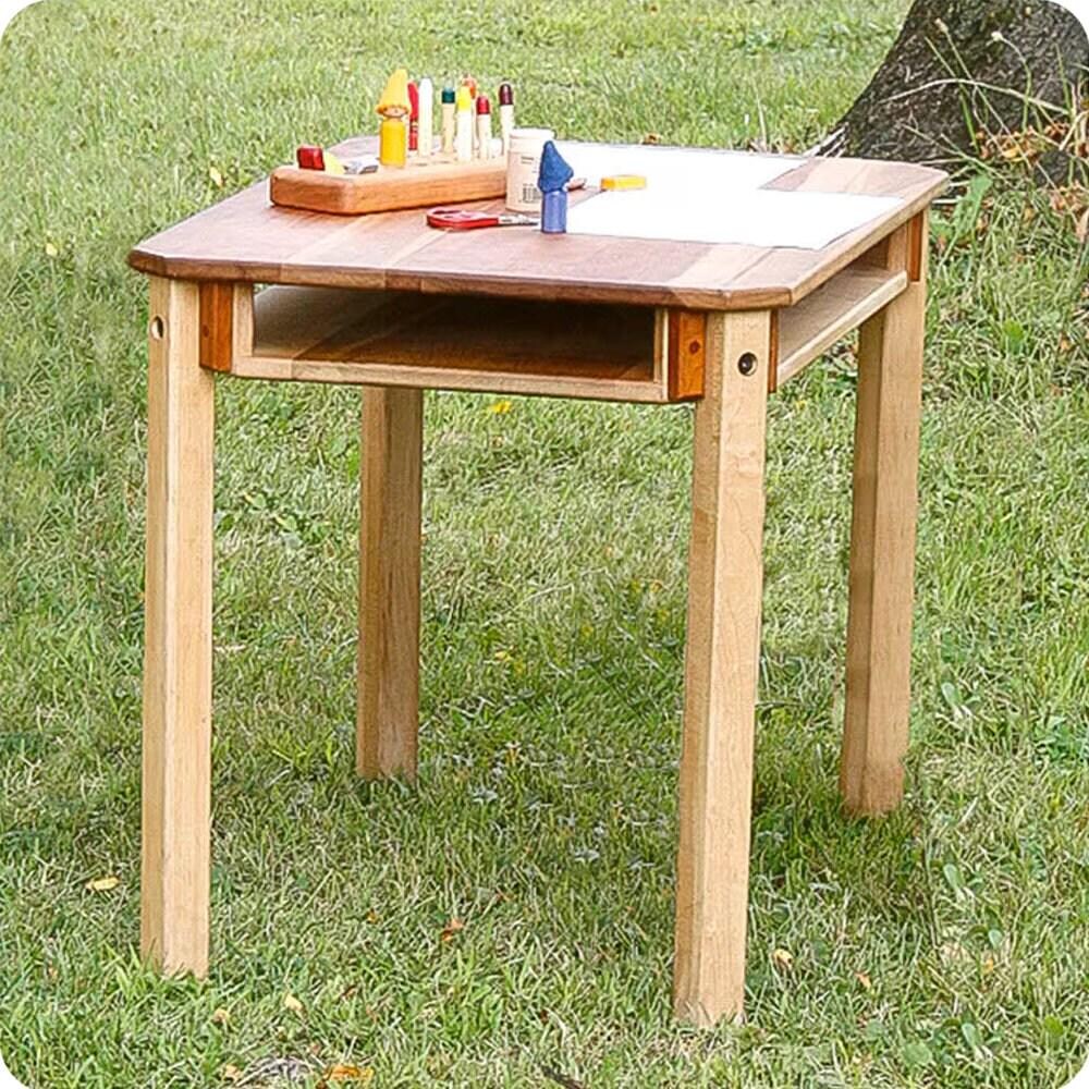 Our Children’s Hardwood Farmhouse Table and Chair Set will be your children’s favorite place to paint, color, craft and snack. And we’ve included a shelf so that paper and crayons can be tucked away!