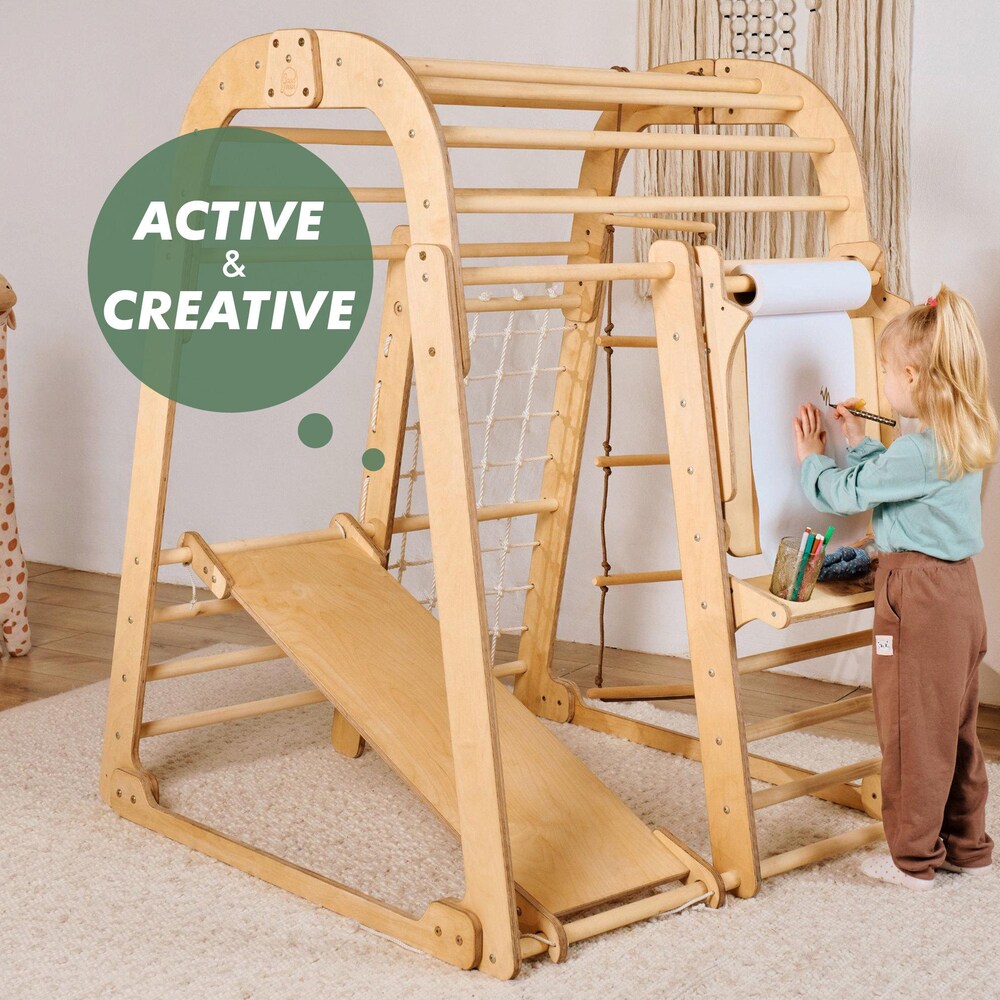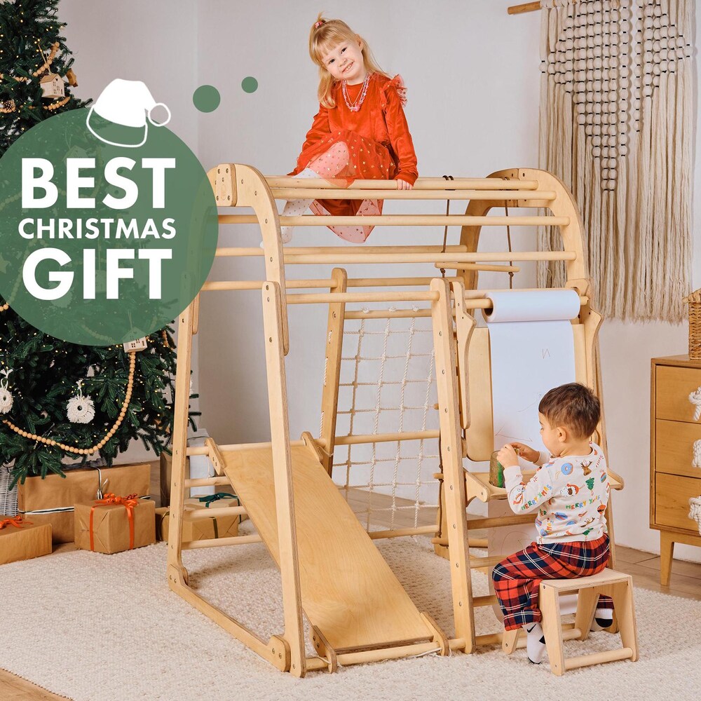 Christmas gift, Childrens indoor playground, Kids gym, Wooden Montessori climbing frame set, Indoor play space – 1st Birthday gift
