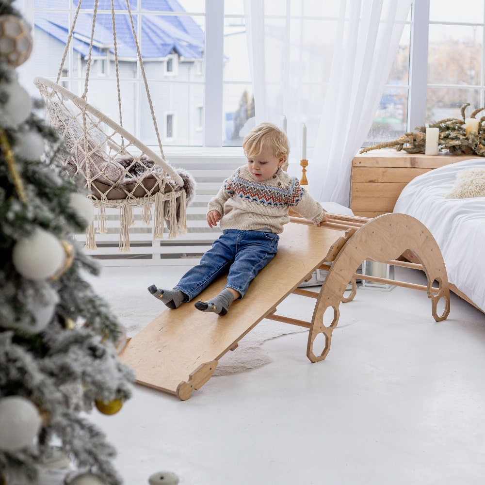 Christmas gift for Toddler – Set of 3 items – Climbing Arch + Foldable Triangle + Ramp ladder/slide, Montessori furniture, Kletterdreieck