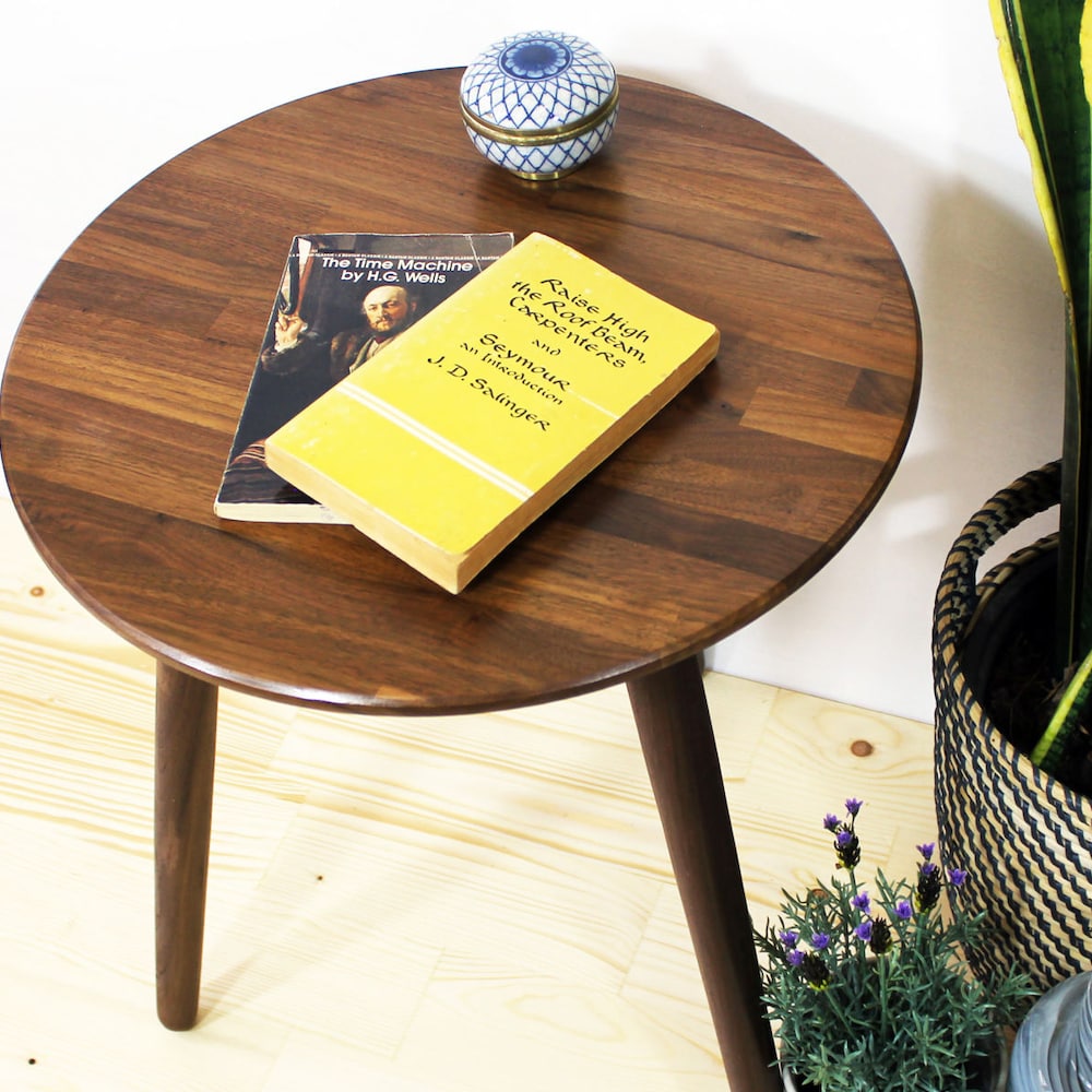 Classic Walnut Teak End / Side Table or Nightstand – Classic Mid Century Modern Eames Style Wood Boho Furniture Design