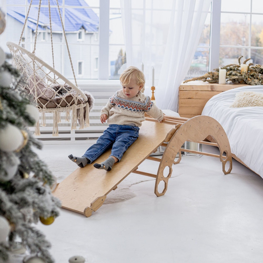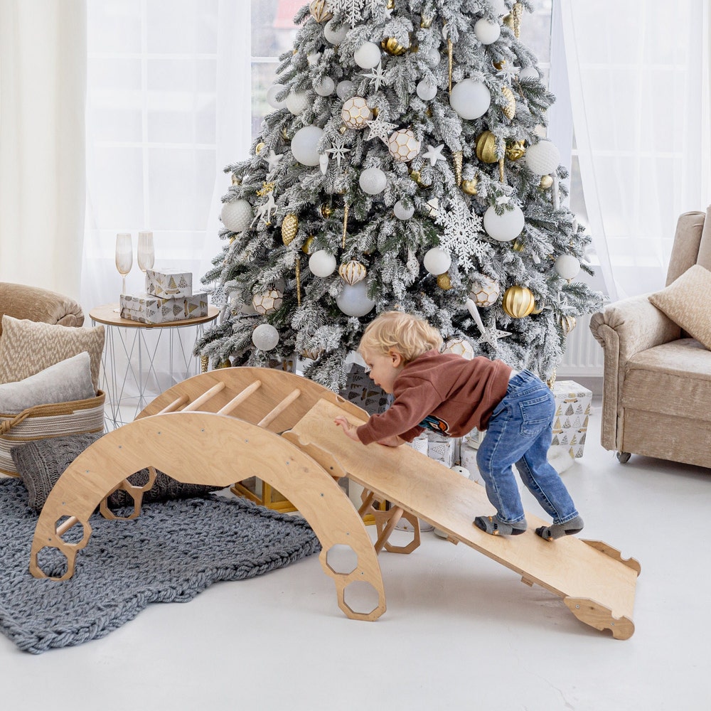 Climbing set for Toddler, Montessori furniture, Climber Arch and pillow, Balance board, Foldable triangle, Indoor playground,First Christmas